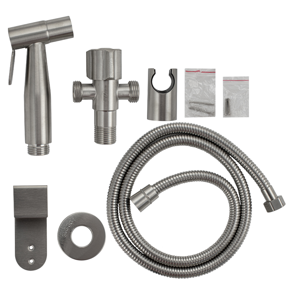 Гигиенический душ, из нержавеющей стали, матовый, от торговой марки GFmark – удобное и безопасное устройство для проведения гигиенических процедур. Корпус лейки с классическим аэратором. Лейка изготовлена из прочного материала, обеспечивающего великолепные эксплуатационные свойства изделия. Подача воды осуществляется нажатием клавиши управления. Матовое покрытие придает модели изящный внешний вид и позволяет легко вписать в современный интерьер ванной и туалетной комнаты. Угловой кран с двойным подключением металлокерамика 1/2 х 1/2, позволяет подключение другого потребителя. В комплекте имеется дополнительное крепление к унитазу. Габаритные размеры: высота лейки 140 мм,ширина лейки 70 мм, длина шланга120 см, ширина шарового крана 70 мм, высота крана 50 мм, диаметр посадочного седла 50 мм. Вес - 0,750 кг, объём - 0,00355 м3. В комплекте лейка, шланг, угловой двойной кран м/к 1/2 х 1/2, кронштейн, крепления к унитазу.