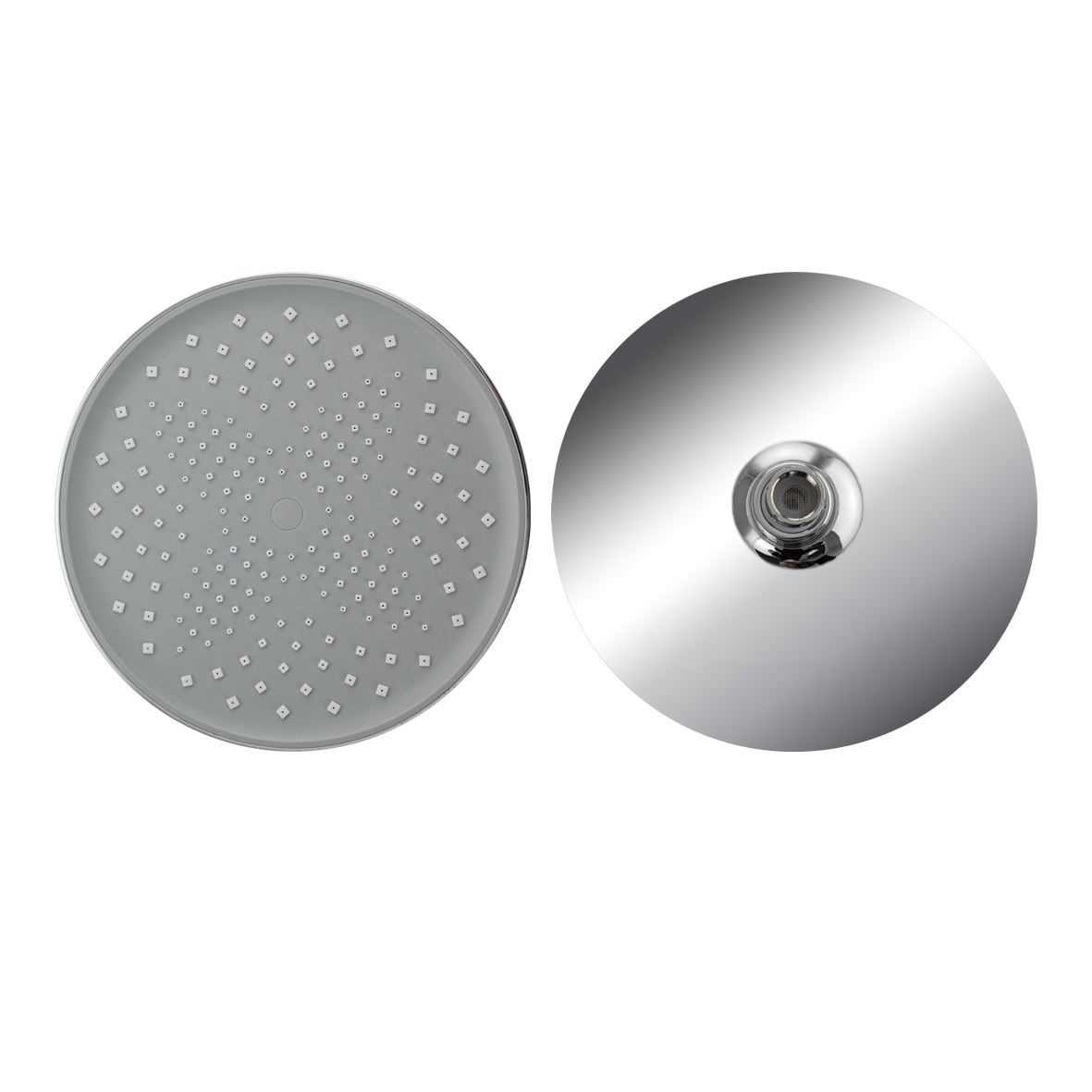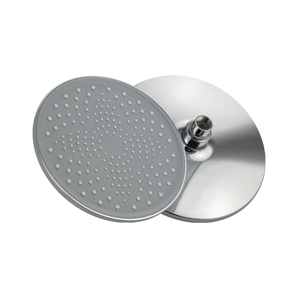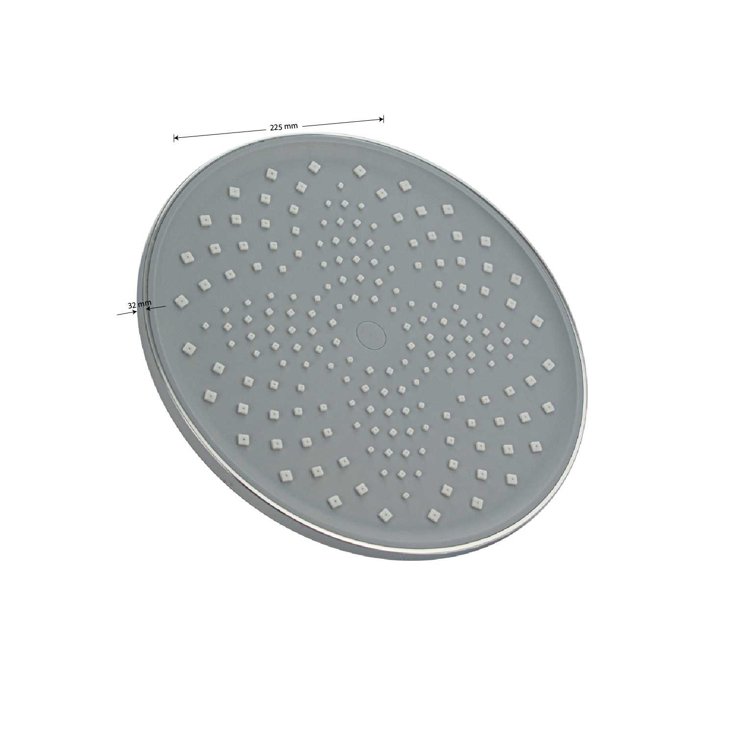 Лейка " тропический душ " круглая, из высокопрочного АБС пластика, серая вставка с белыми квадратными форсунками, цвет ХРОМ.