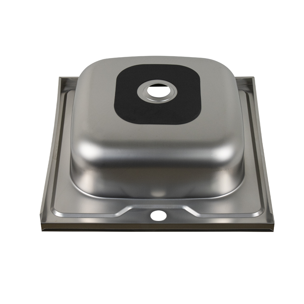 Накладная мойка FABIA из нержавеющей стали отличный вариант для кухни в стиле «эконом», она прослужит многие годы. Классическая форма и матовый цвет «хром» гармонично впишутся в любой интерьер и никогда не выйдут из моды. Оптимальный размер позволяет свободно мыть посуду, без страха её разбить. Мойка устанавливается на тумбочку. Практичная площадка, расположенная по центру, даёт возможность вмонтировать любую понравившуюся модель смесителя. Габаритные размеры: ширина 500 мм, длина 500 мм, глубина 160 мм, толщина стали 0,4 мм. Вес - 1,300 кг, объём - 0,01028 м3.