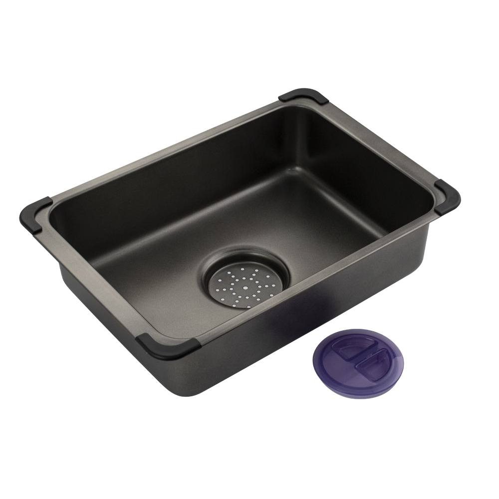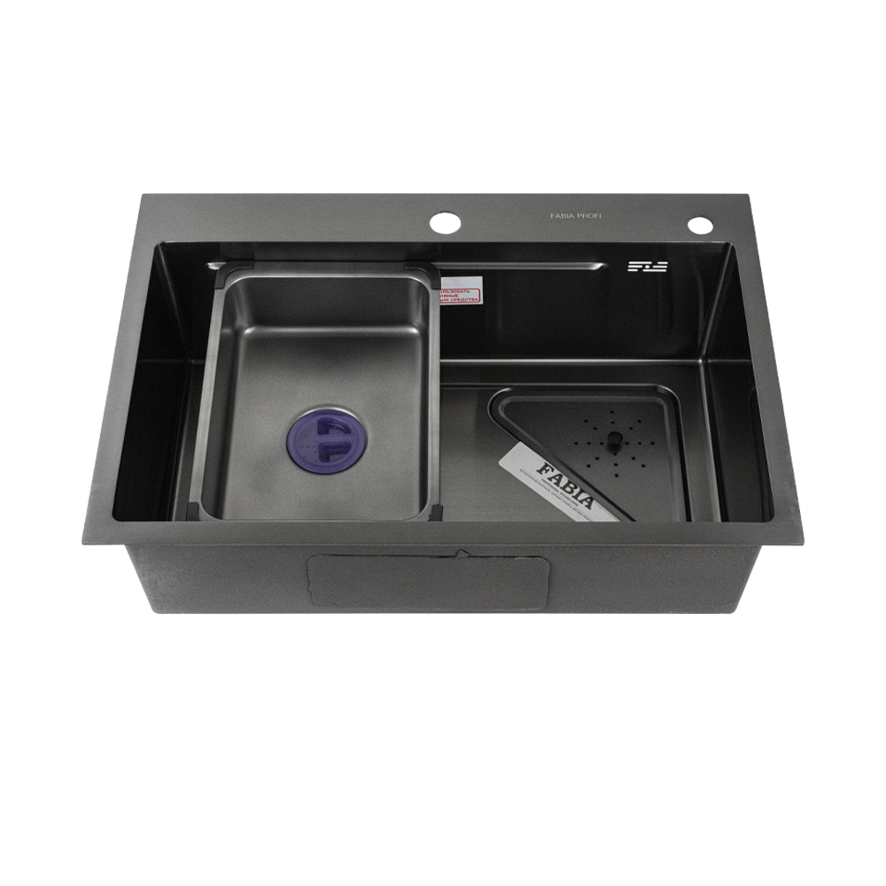 Мойка врезная, графит, большой сифон с переливом. Сифон с углубленной горловиной, мусоросборником и крышкой. Врезная кухонная мойка произведена из премиальной нержавеющей стали, обладает повышенной прочностью. Особенность мойки заключается в конструкции ее дна, имеющего небольшой уклон. Благодаря такой особенности, вода быстрее уходит в слив, не застаивается, что способствует поддержанию гигиеничности в чаше. Скругленные внутренние углы облегчают уход за мойкой, препятствуют скоплению частичек грязи. Тихой в использовании, мойку делает шумоизолирующее покрытие и накладки с обратной стороны мойки. В комплект входит универсальная раздвижная корзина, сифон, мойка, крепёж. Габаритные размеры: ширина 680 мм, длина 450 мм, глубина 200 мм, корзина 250*360 мм, толщина основания 3,0 мм, чаша 0,8 мм. Вес - 9,500 кг, объём - 0,08000 м3.