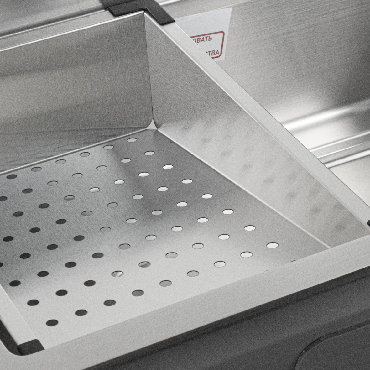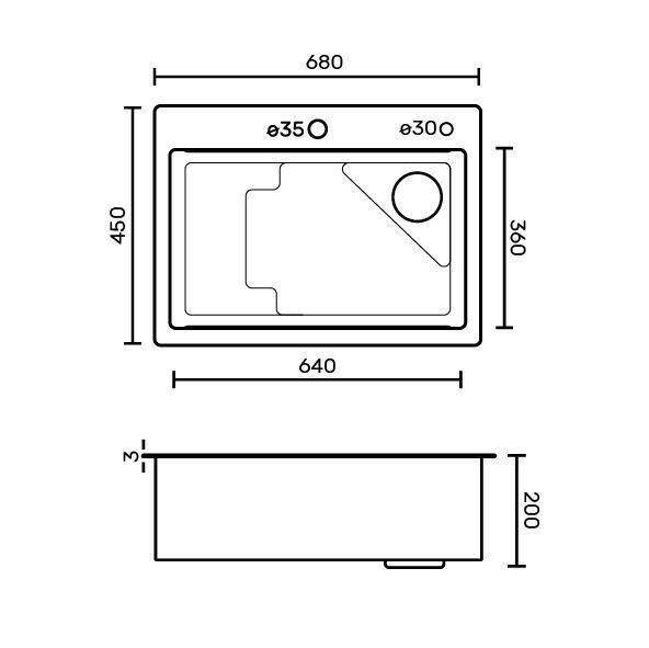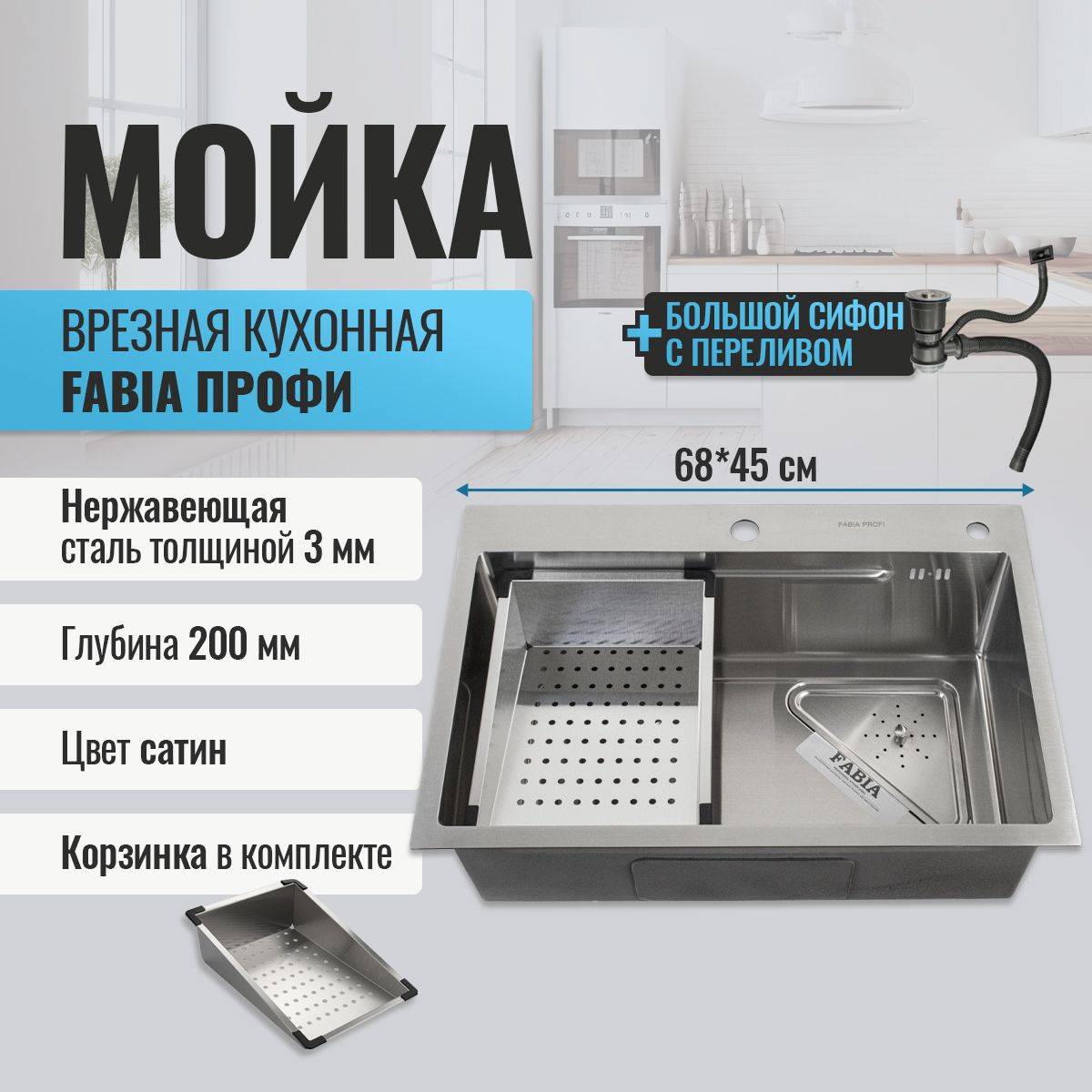 Мойка врезная, большой сифон с переливом. Сифон с углубленной горловиной, мусоросборником и крышкой. Врезная кухонная мойка произведена из премиальной нержавеющей стали, обладает повышенной прочностью. Особенность мойки заключается в конструкции ее дна, имеющего небольшой уклон. Благодаря такой особенности, вода быстрее уходит в слив, не застаивается, что способствует поддержанию гигиеничности в чаше. Скругленные внутренние углы облегчают уход за мойкой, препятствуют скоплению частичек грязи. Тихой в использовании, мойку делает шумоизолирующее покрытие и накладки с обратной стороны мойки. В комплект входит универсальная корзина, сифон, мойка, крепёж. Габаритные размеры: ширина 680 мм, длина 450 мм, глубина 200 мм, корзина 260*360 мм, толщина основания 3,0 мм, чаша 0,8 мм. Вес - 10.000 кг, объём - 0,09125 м3.