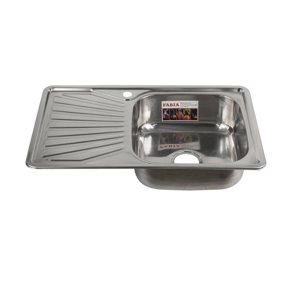 Врезная мойка FABIA из нержавеющей стали отличный вариант для кухни, она прослужит многие годы. Классическая форма и хромированный цвет гармонично впишутся в любой интерьер и никогда не выйдут из моды. Оптимальный размер с площадкой для посуды позволяет свободно мыть посуду, без страха её разбить. Мойка врезается в столешницу. Специальное дополнительное антишумовое покрытие, нанесенное на обратную сторону чаш, разработано для снижения шума воды в мойке. Конструкция краев мойки, крепления и специальная уплотнительная прокладка обеспечивает максимально плотное прилегание к столешнице и защищает от протекания. Практичная площадка, расположенная по центру, даёт возможность вмонтировать любую понравившуюся модель смесителя. В комплекте сифон с большой горловиной с переливом, крепёж. Габаритные размеры: ширина 780 мм, длина 480 мм, глубина 180 мм, толщина стали 0,8 мм. Вес - 3,400 кг, объём - 0,01958 м3.