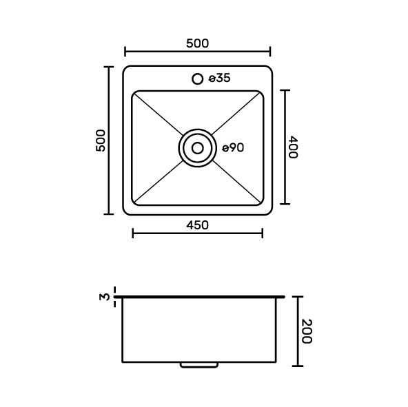 Мойка врезная, цвет графит, большой сифон с переливом. Сифон с углубленной горловиной, мусоросборником и крышкой. Врезная кухонная мойка произведена из премиальной нержавеющей стали SUS 304, обладает повышенной прочностью. Особенность мойки заключается в конструкции ее дна, имеющего небольшой уклон. Благодаря такой особенности, вода быстрее уходит в слив, не застаивается, что способствует поддержанию гигиеничности в чаше. Скругленные внутренние углы облегчают уход за мойкой, препятствуют скоплению частичек грязи.Тихой в использовании мойку делает шумоизолирующее покрытие и накладки с обратной стороны мойки. В комплект входит сифон, мойка. Габаритные размеры: ширина 500 мм, длина 500 мм, глубина 200 мм, толщина основания 3,0 мм, чаша 0,6 мм. Вес - 6.1 кг, объём - 0.06883 м3.
