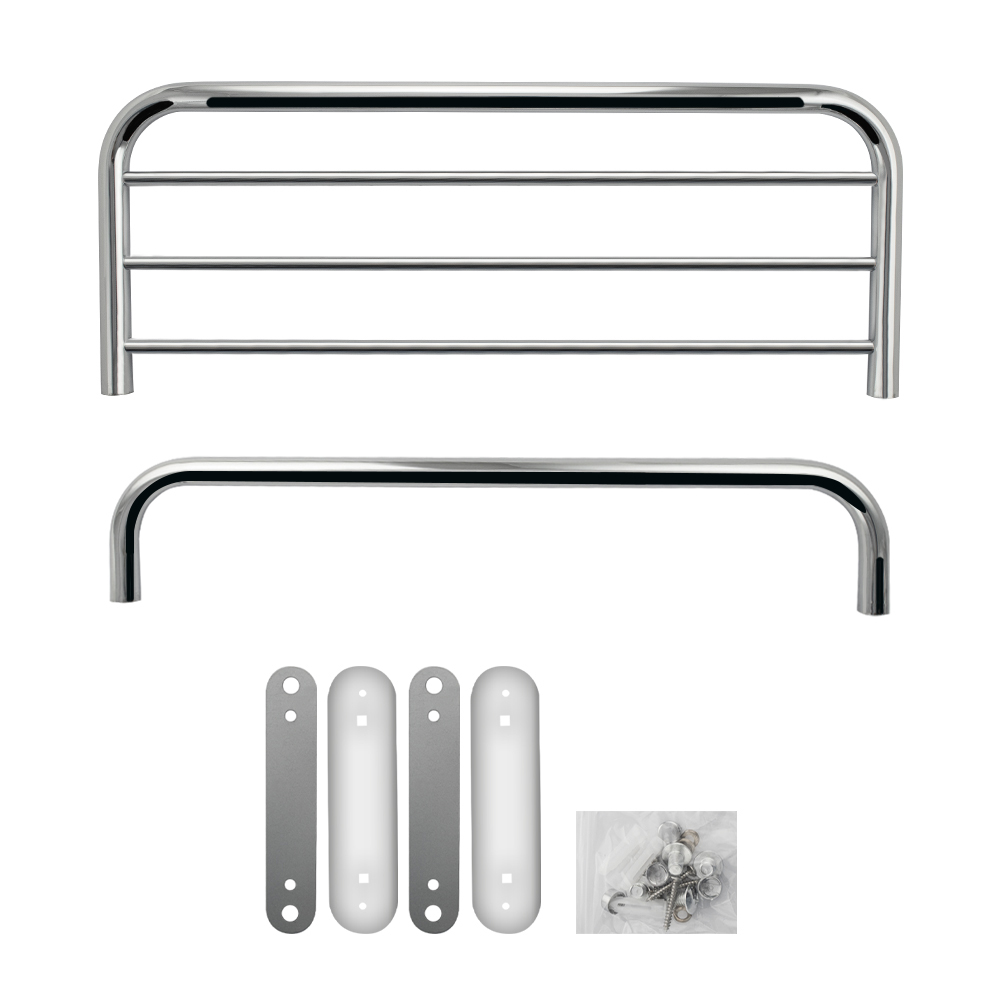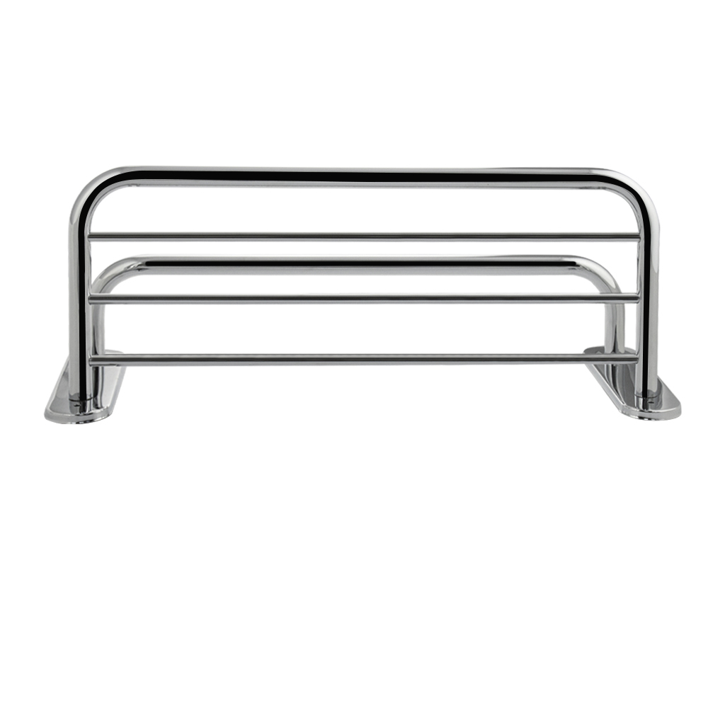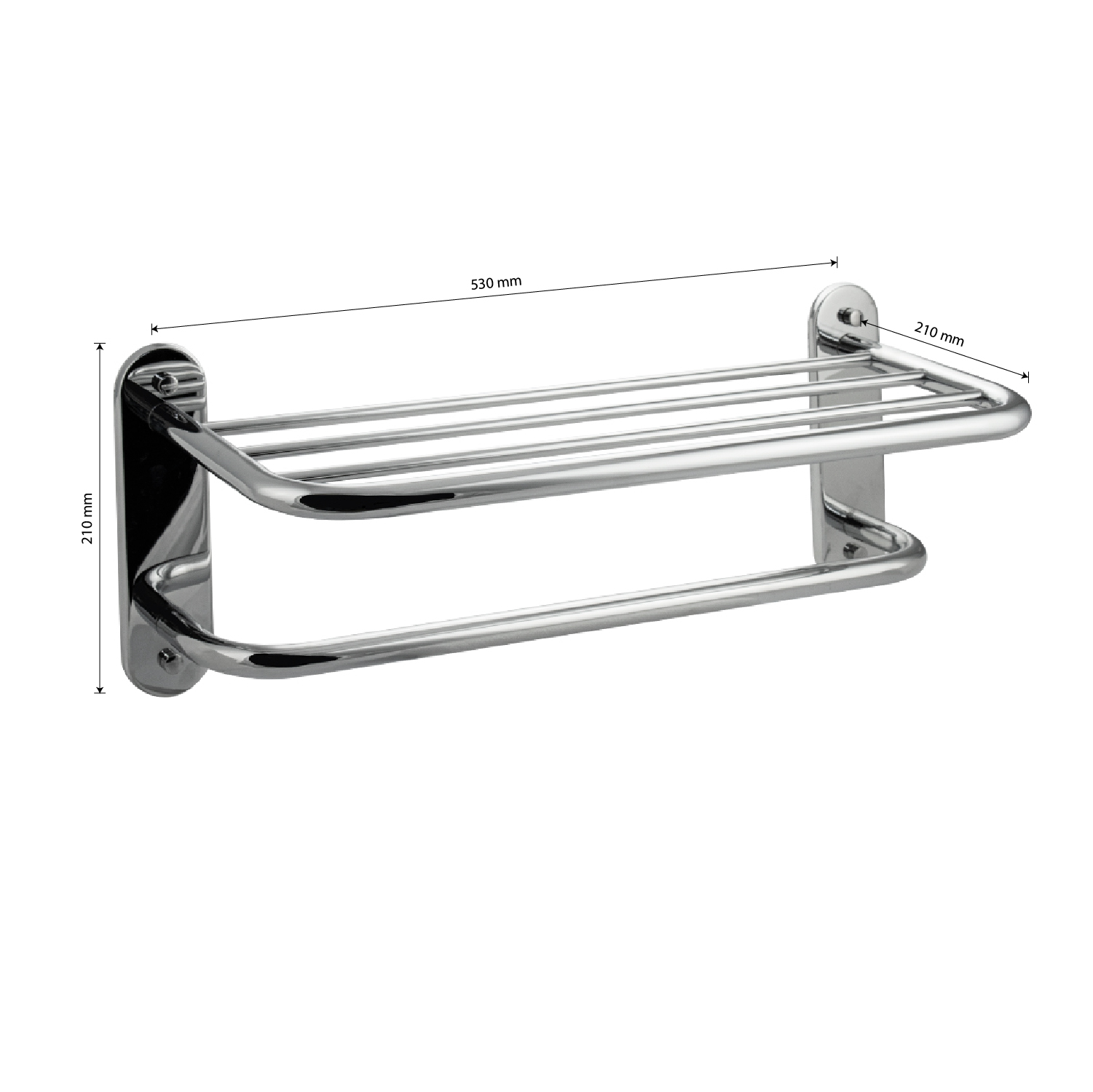 Полка для полотенца с опорой большая, для ванной, привлекает своим современным дизайном, многофункциональностью и надежностью конструкции. Вместительная верхняя часть полки в ванную комнату позволяет размещать на ней объёмные вещи. Кухня, ванная, прихожая, кладовка или гардеробная - эта полка идеально подойдет везде. Металлическая полка оснащена дополнительной перекладиной. Безупречно отшлифованная нержавеющая сталь делает её устойчивой к влаге и исключает появление ржавчины. Полка для ванной функциональное и практичное решение для любого интерьера. Материал изготовления — нержавеющая сталь. Хромированное покрытие очень стойко переносит истирания и обеспечивает зеркальный блеск изделия. Идеально подойдет не только для ванной, но и для кухни. Изделие крепится к стене с помощью дюбелей и саморезов (входят в комплект). Габаритные размеры: ширина 530 мм, высота 210 мм, глубина 210 мм. Вес - 1,100 кг, объём - 0,00572 м3.
