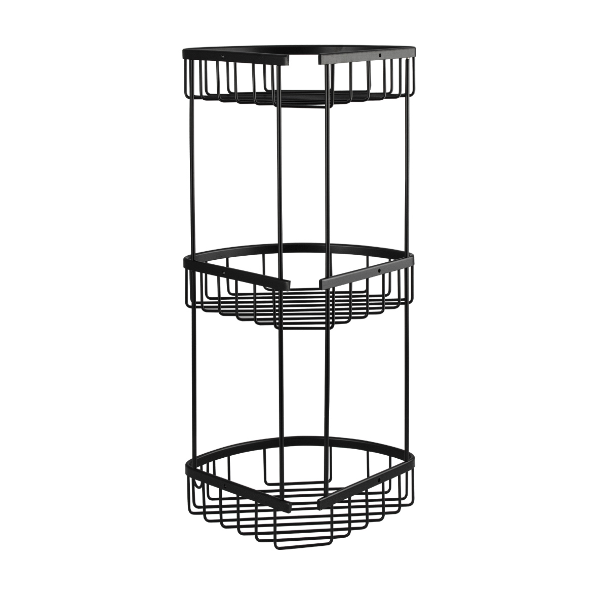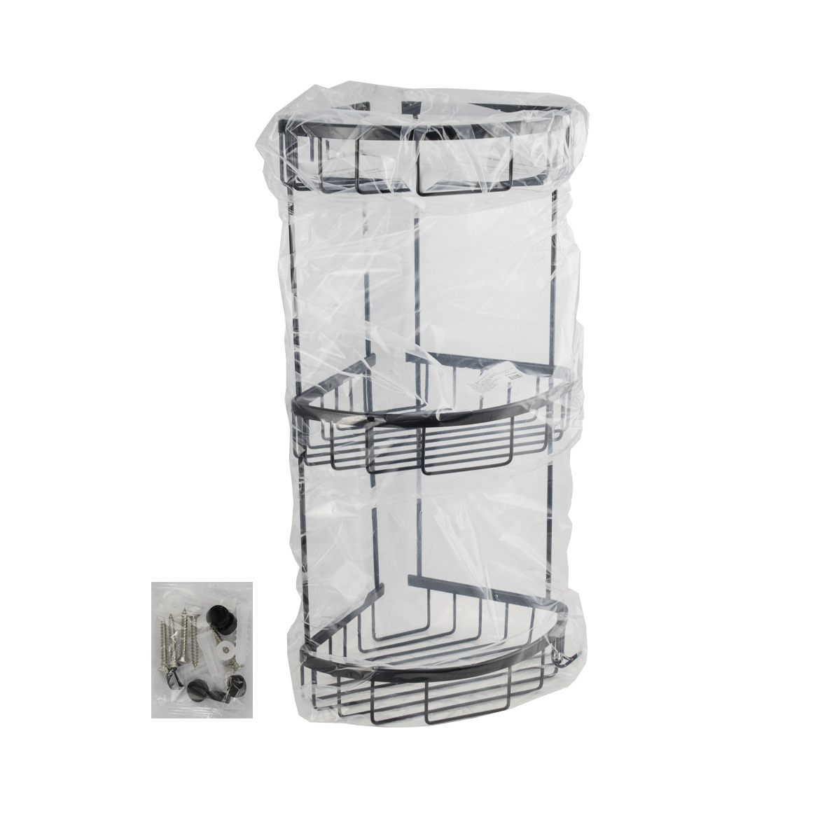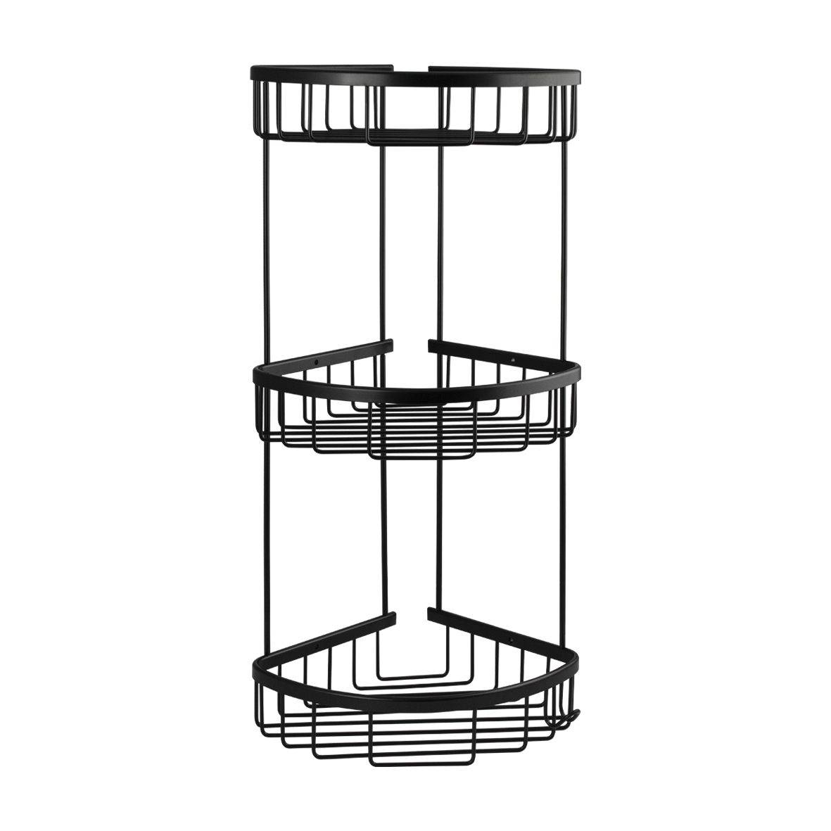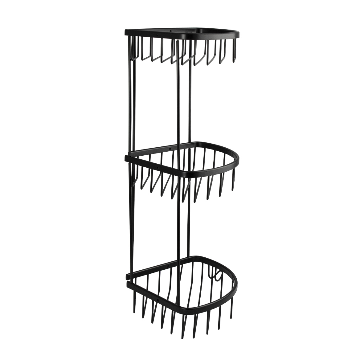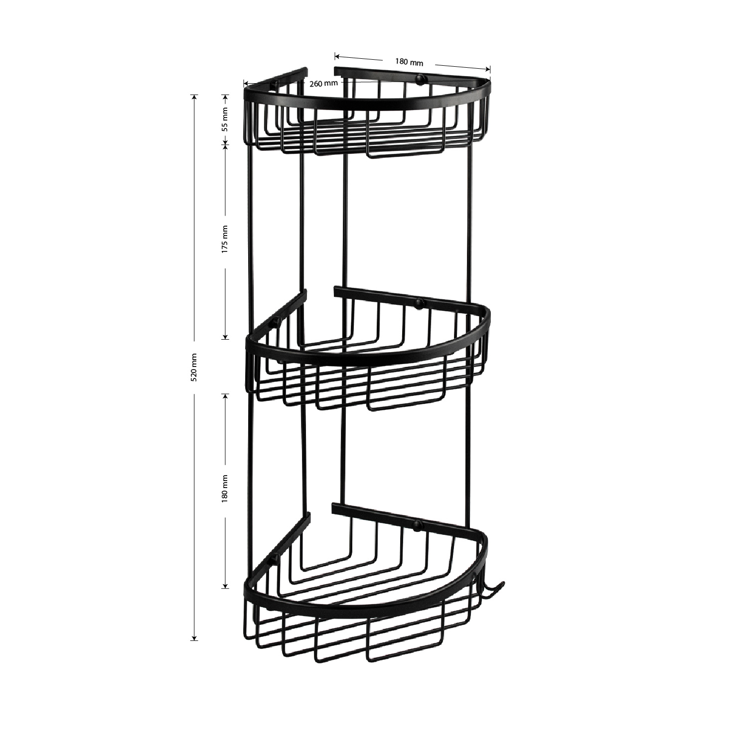 Полочка угловая овальная трёхэтажная для принадлежностей, решётка обладает высокими эксплуатационными характеристиками и подходит для использования дома, в общественных местах: отелях, ресторанах и пр. Изготовлена из прочного алюминия с матовым покрытием чёрного цвета, которое придает безупречный вид и долговечность. Металлическая полка оснащена крючками. Аксессуар не занимает много места, надежно фиксируется к стене при помощи набора креплений (входят в комплект) и служит удобным местом для хранения бытовых и косметических средств. Габаритные размеры: высота 520 мм, ширина 260 мм, длина 180 мм, расстояние между полками 180 и 175 мм. Вес - 0,700 кг, объём - 0,01333 м3.