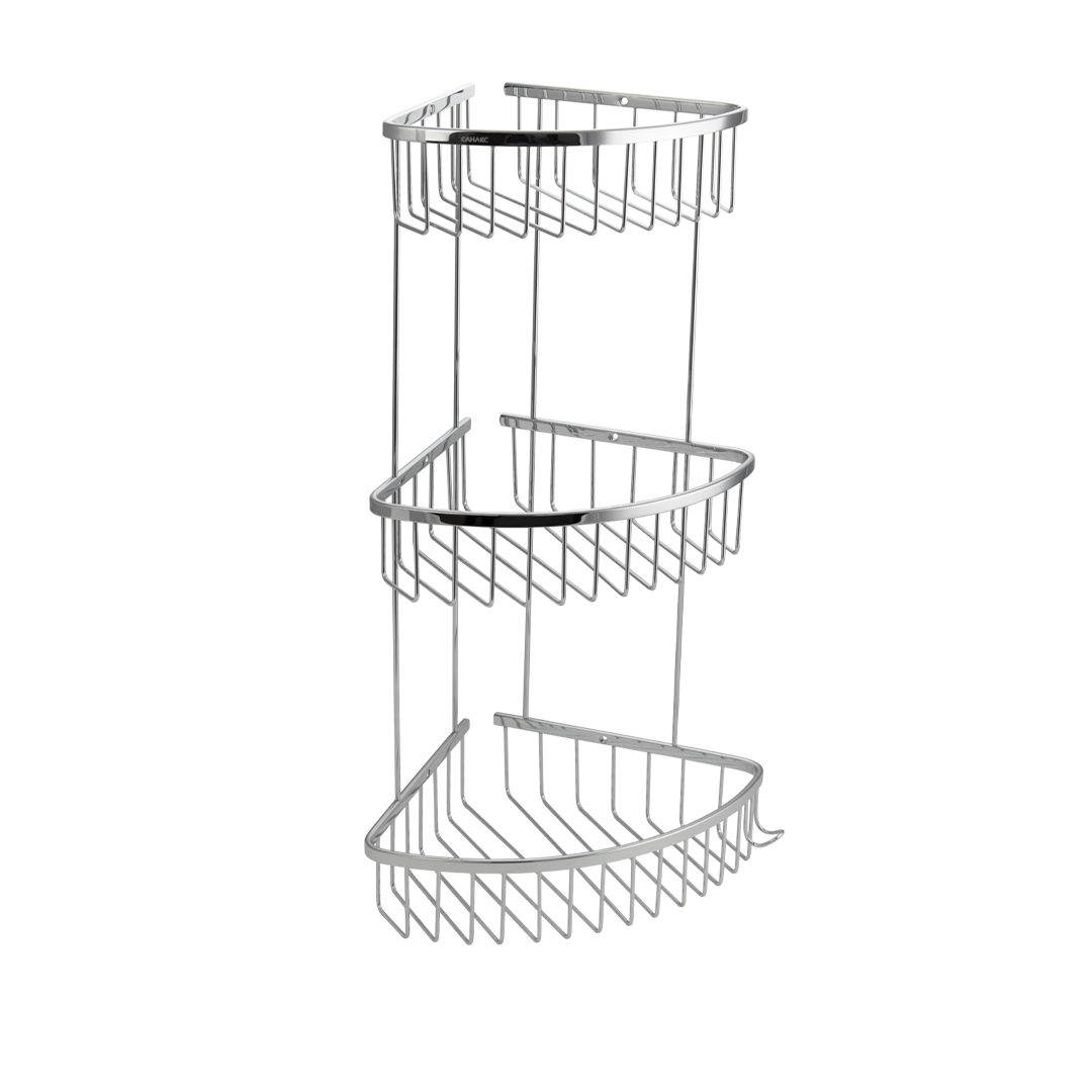 Полочка угловая, овальная, трёхэтажная, для принадлежностей, решётка обладает высокими эксплуатационными характеристиками и подходит для использования дома, в общественных местах: отелях, ресторанах и пр. Изготовлена из прочной нержавеющей стали с хромоникелевым покрытием, которое придает безупречный глянцевый блеск и долговечность. Металлическая полка оснащена крючком. Аксессуар не занимает много места, надежно фиксируется к стене при помощи набора креплений (входят в комплект) и служит удобным местом для хранения бытовых и косметических средств. Габаритные размеры: высота 560 мм, глубина верхней полки 180 мм, глубина средней полки 220 мм, глубина нижней полки 250 мм, расстояние между полками 175 мм. Вес - 1,700 кг, объём - 0,04500 м3.