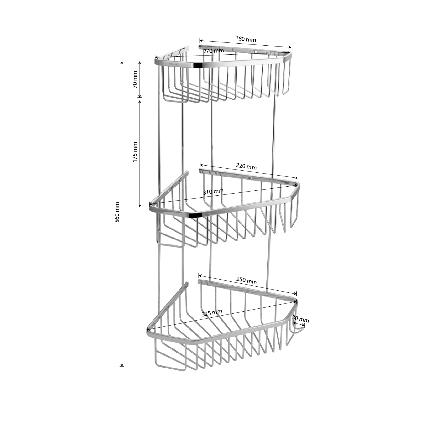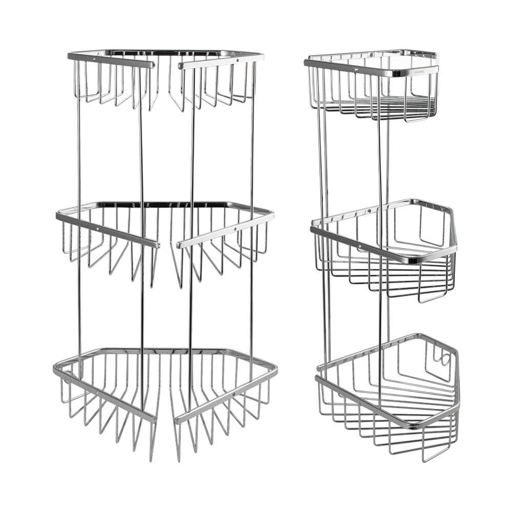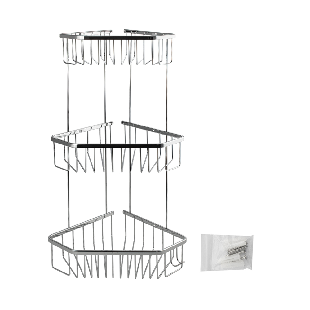 Полочка угловая, пятиугольная, двухэтажная, для принадлежностей, решётка обладает высокими эксплуатационными характеристиками и подходит для использования дома, в общественных местах: отелях, ресторанах и пр. Изготовлена из прочной нержавеющей стали с хромоникелевым покрытием, которое придает безупречный глянцевый блеск и долговечность. Металлическая полка оснащена крючкоми. Аксессуар не занимает много места, надежно фиксируется к стене при помощи набора креплений (входят в комплект) и служит удобным местом для хранения бытовых и косметических средств. Габаритные размеры: высота 560 мм, верхняя полка 180*270 мм, средняя полка 220*310 мм, нижняя полка 250*325 мм, расстояние между полками 175 мм, высота полки 70 мм. Вес - 1,600 кг, объём - 0,04500 м3.