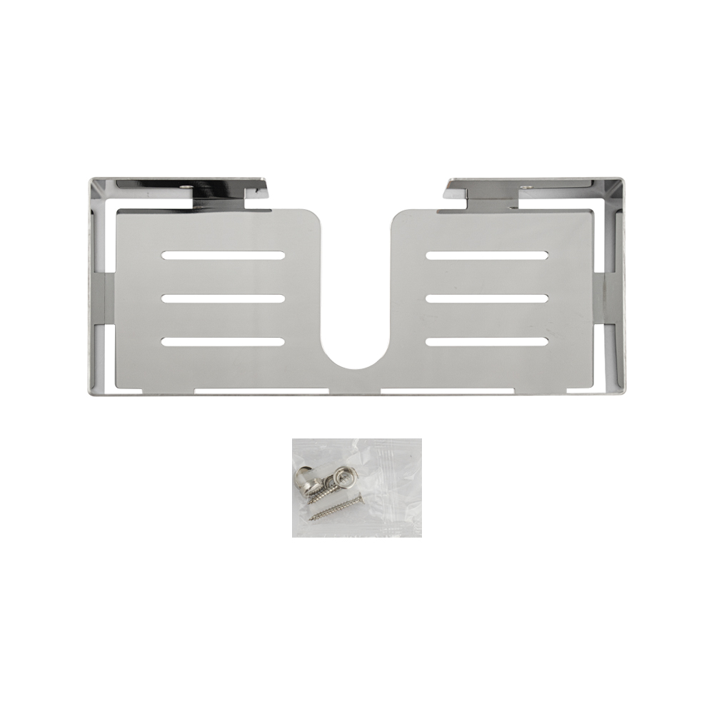 Полочка литая, прямоугольная, для душевых стоек, швг 24х4х10 см, из нержавеющей стали марки SUS 304, цвет ХРОМ.
