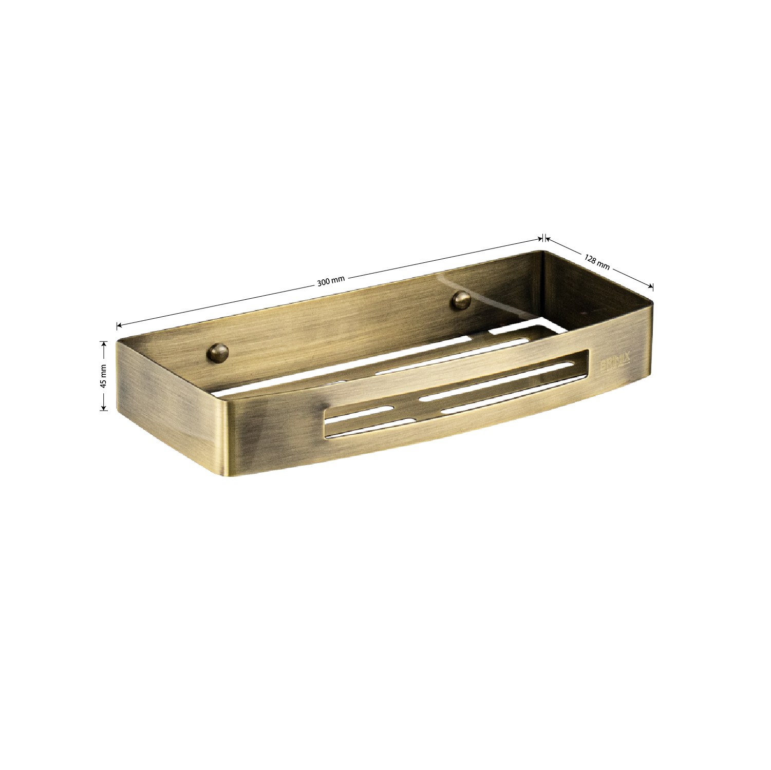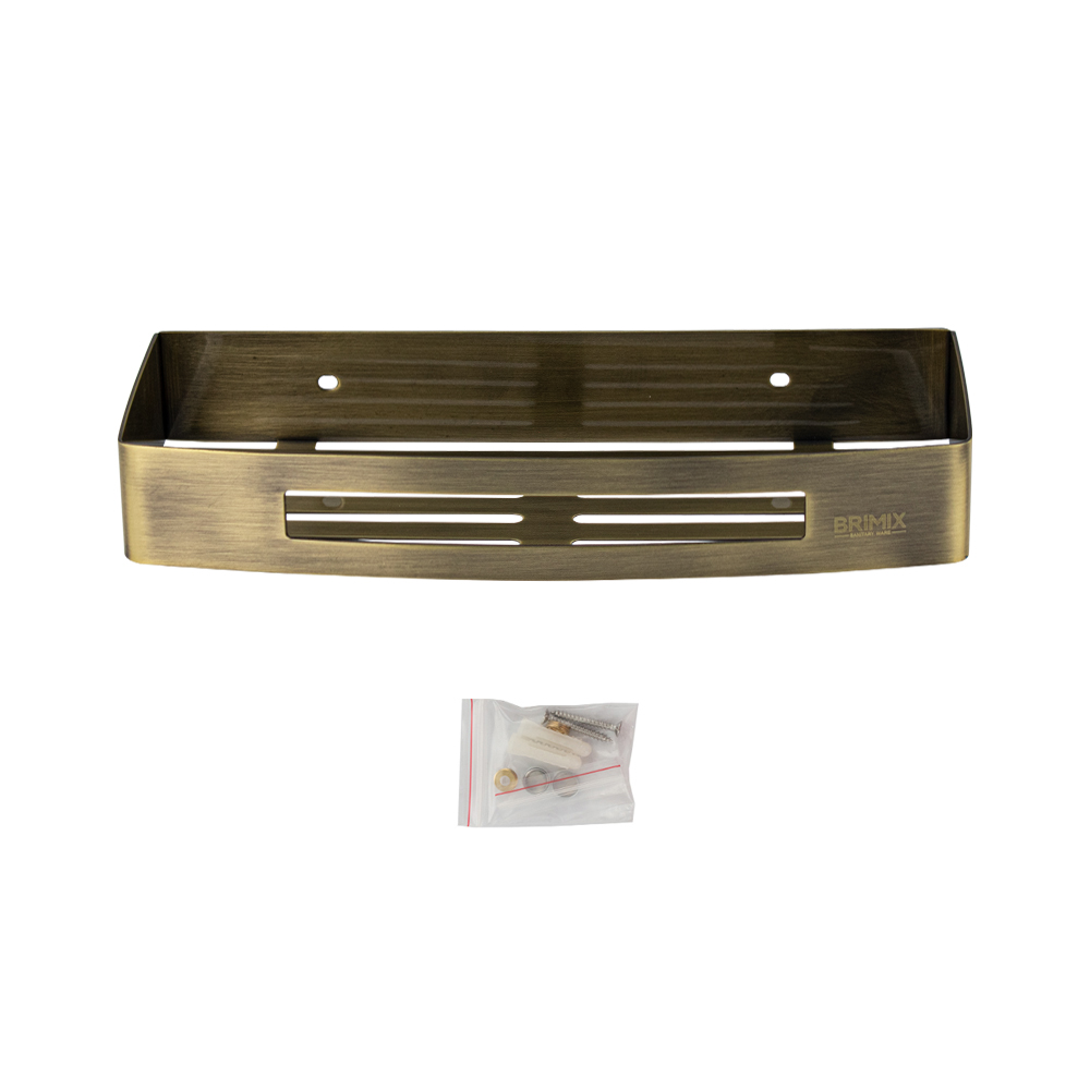 Полочка для принадлежностей, прямоугольная, с литым дном, одноэтажная, обладает высокими эксплуатационными характеристиками и подходит для использования дома, в общественных местах: отелях, ресторанах и пр. Изготовлена из прочной нержавеющей стали с бронзовым покрытием, которое придает безупречный внешний вид и долговечность. Аксессуар не занимает много места, надежно фиксируется к стене при помощи набора креплений (входят в комплект) и служит удобным местом для хранения бытовых и косметических средств. Габаритные размеры: длина 300 мм, ширина 128 мм, высота 45 мм. Вес - 0,740 кг, объём - 0,0035 м3.