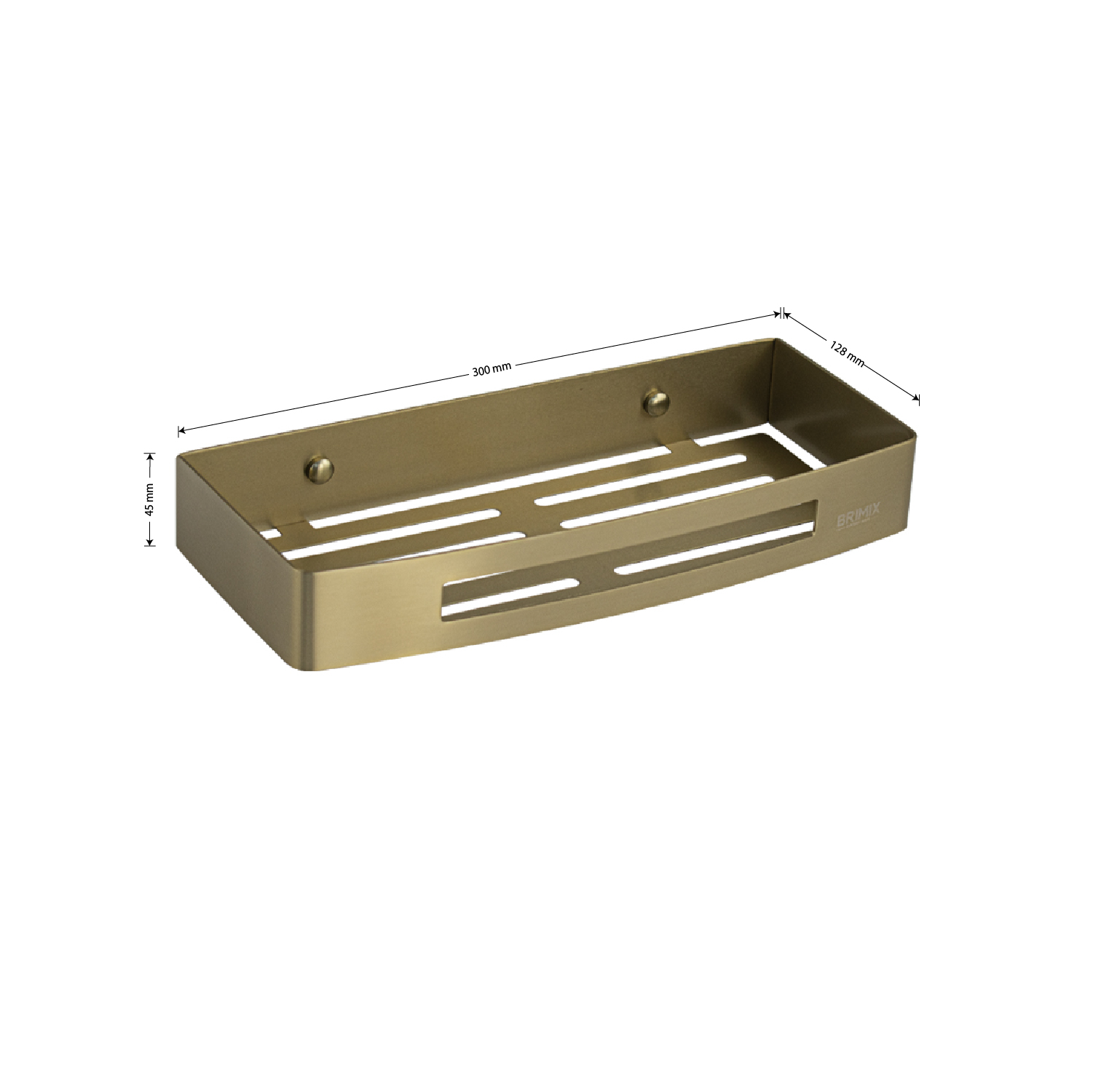 Полочка для принадлежностей, прямоугольная, с литым дном, одноэтажная, обладает высокими эксплуатационными характеристиками и подходит для использования дома, в общественных местах: отелях, ресторанах и пр. Изготовлена из прочной нержавеющей стали с золотым матовым покрытием, которое придает безупречный внешний вид и долговечность. Аксессуар не занимает много места, надежно фиксируется к стене при помощи набора креплений (входят в комплект) и служит удобным местом для хранения бытовых и косметических средств. Габаритные размеры: длина 300 мм, ширина 128 мм, высота 45 мм. Вес - 0,720 кг, объём - 0,0035 м3.