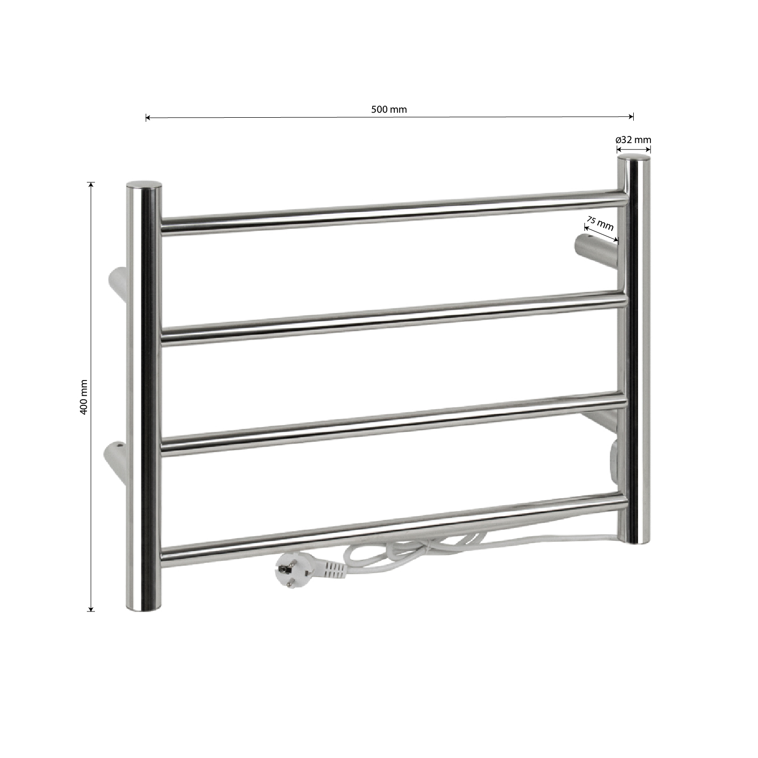 Полотенцесушитель электрический классик, премиум, прямой, лесенк, из нержавеющей стали 304, тэн из углеродного волокна, гармонично впишется в современный интерьер и поможет поддержать комфортную атмосферу в ванной комнате, работает вне зависимости от отопительного сезона, и его можно разместить в любом месте ванной или даже на стене в комнате. Хромированная поверхность устойчива к высоким температурам. Благодаря продуманному расположению труб можно размещать объемный текстиль, сократив время просушки. Установка и ремонт не требуют работы сантехников. Габариты и параметры: ширина 530 мм, высота 400, глубина 75 мм. 4 перекладины с сухим ТЭНом, 40 W, 220-230 V, 50-60 Гц, t - 50°С, IP 44. Комплект: полотенцесушитель, крепёж, провод с евровилкой для подключения. Вес - 2,200 кг, объём - 0,01121 м3.