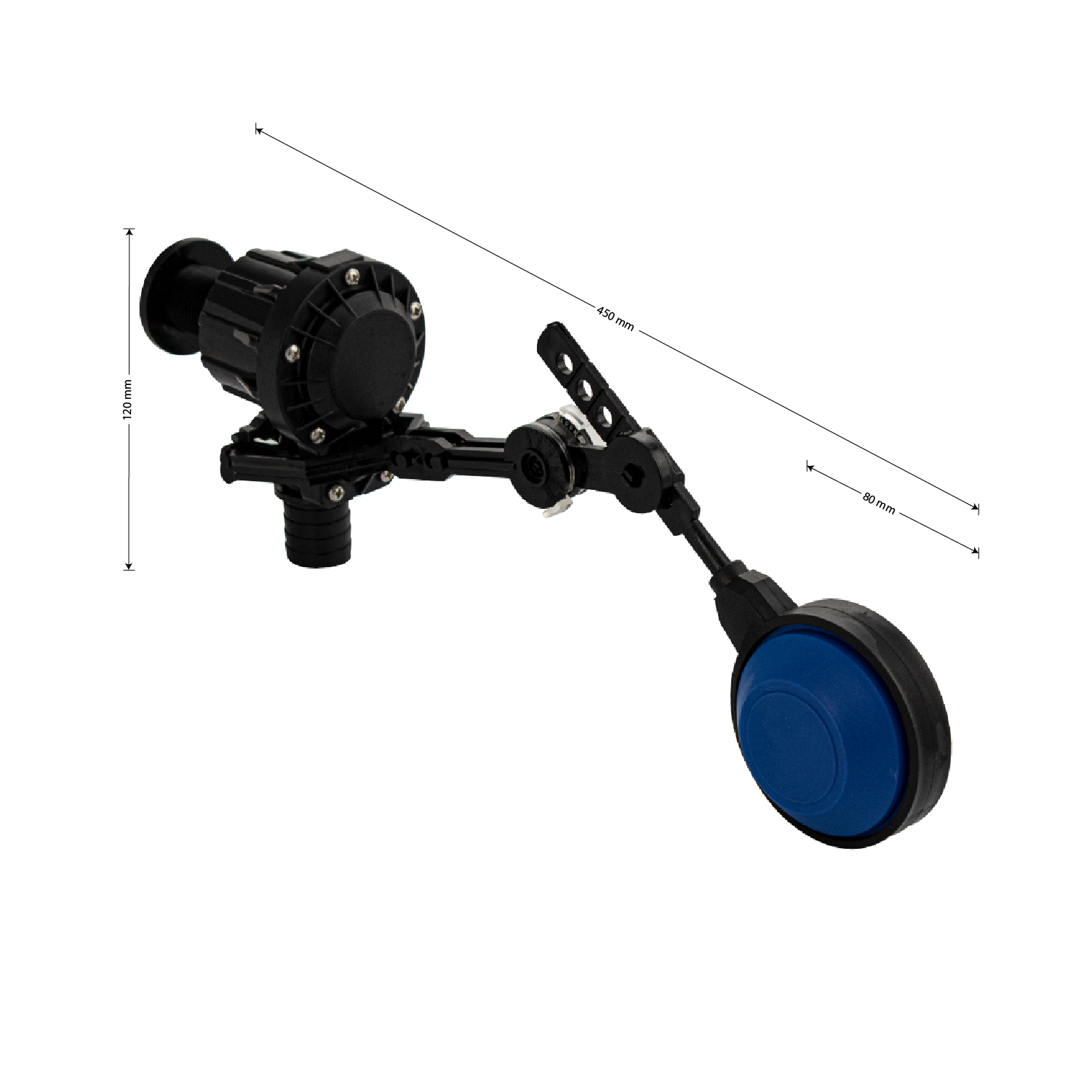 Поплавковый клапан для бачка и ёмкостей, 3/4" из высокопрочного АБС пластика, модель Quick Stop, цвет ЧЕРНЫЙ.
