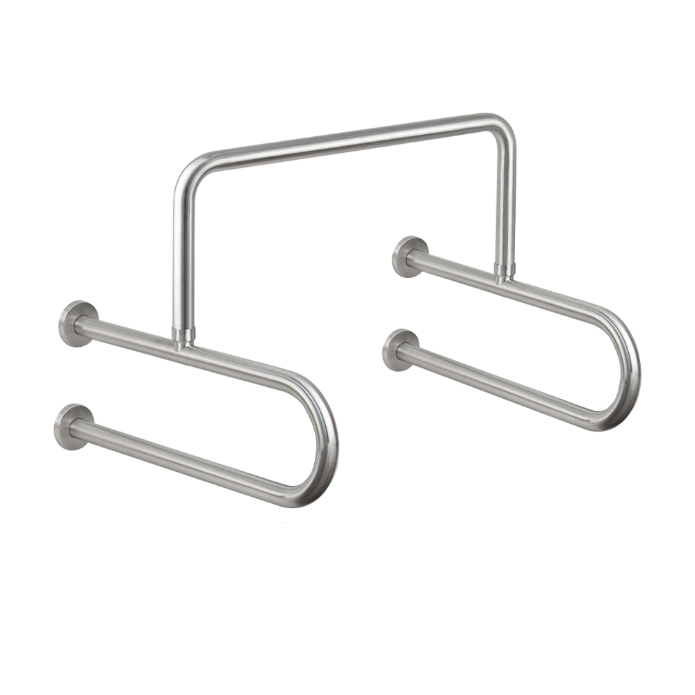 Поручень для инвалидов к писсуару. Изделие представляет собой эргономичное опорное устройство, предназначенное для установки над писсуаром. Выполнено из высококачественной нержавеющей стали AISI 304, что обеспечивает защиту от коррозии и продолжительный эксплуатационный период. Поручень выполнен из цельной трубы, не имеет видимых швов и соединений и является полностью травмобезопасным. Конструкция поручня имеет форму и ширину, удобную для захвата кистью руки, является травмобезопасной не имеет стыков на поверхности и острых углов. Габаритные размеры: ширина 600 мм, длина от стены 550 мм, высота 448 мм, расстояние между двумя параллельными поручнями 168 мм. Вес - 4,200 кг, объём - 0,00378 м3.