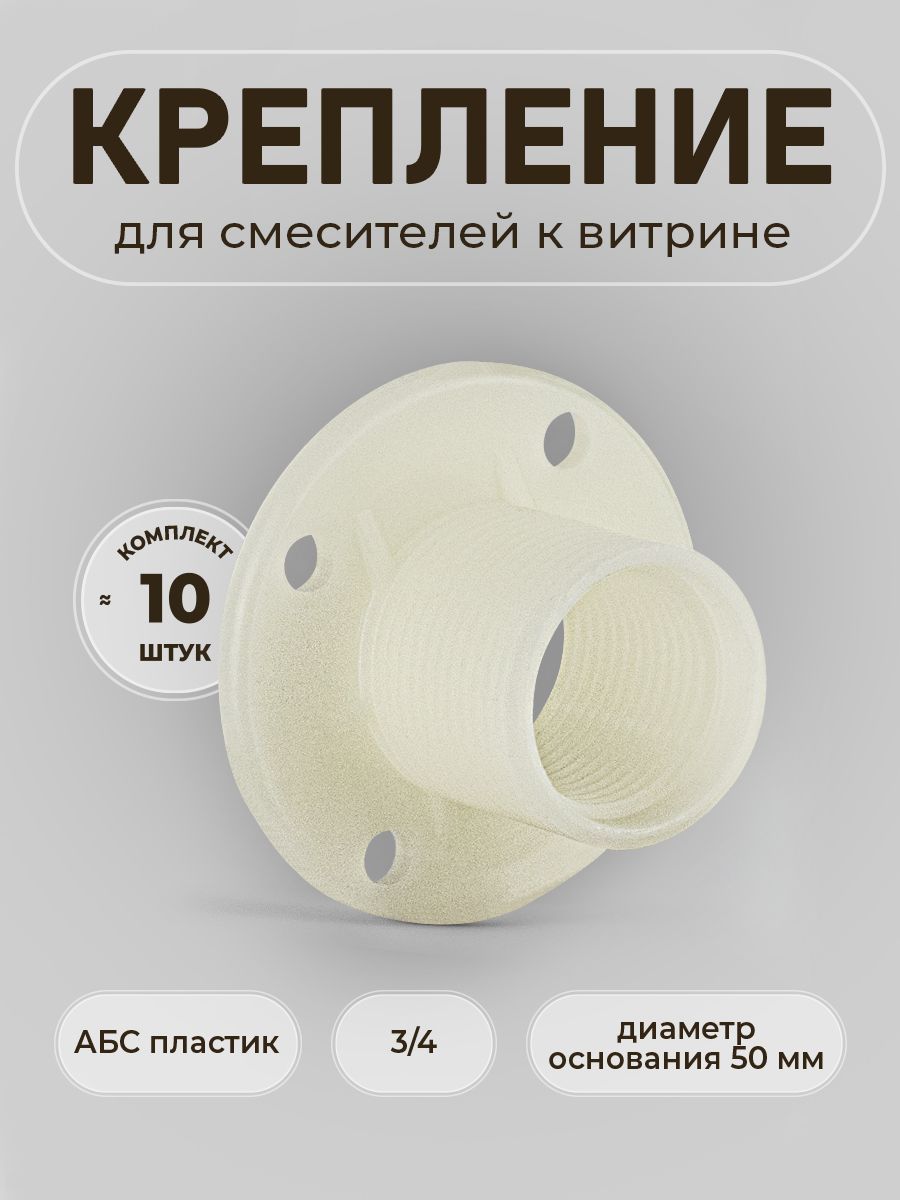 Крепление смесителей к витрине, на 3/4, пластиковое. Размеры: ширина 25, диаметр посадочного седла 50 мм. Вес - 0,050 кг, объем - 0,00007 м3.