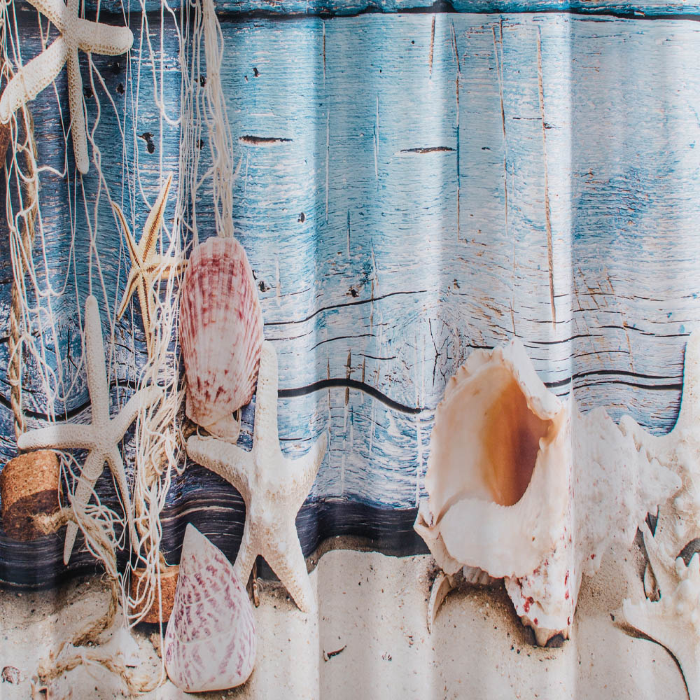Штора с рисунком морское дно, в ванную комнату, без колец - полиэстэр