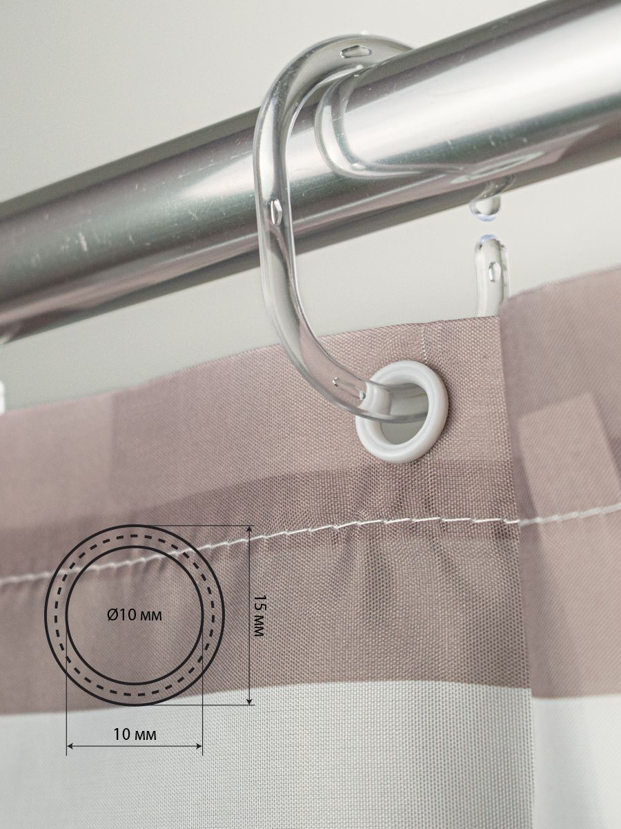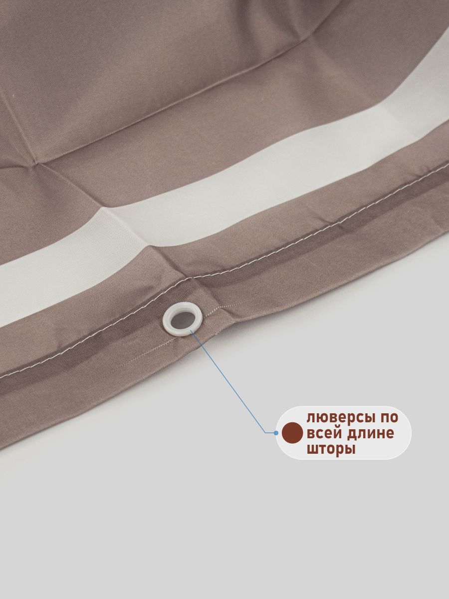 Штора с рисунком, ГОРИЗОНТАЛЬНЫЕ КОРИЧНЕВЫЕ ПОЛОСКИ, в ванную комнату, без колец, полиэстэр