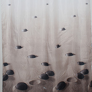 Штора с рисунком, КАМНИ НА ПЕСКЕ, в ванную комнату, без колец, полиэстэр