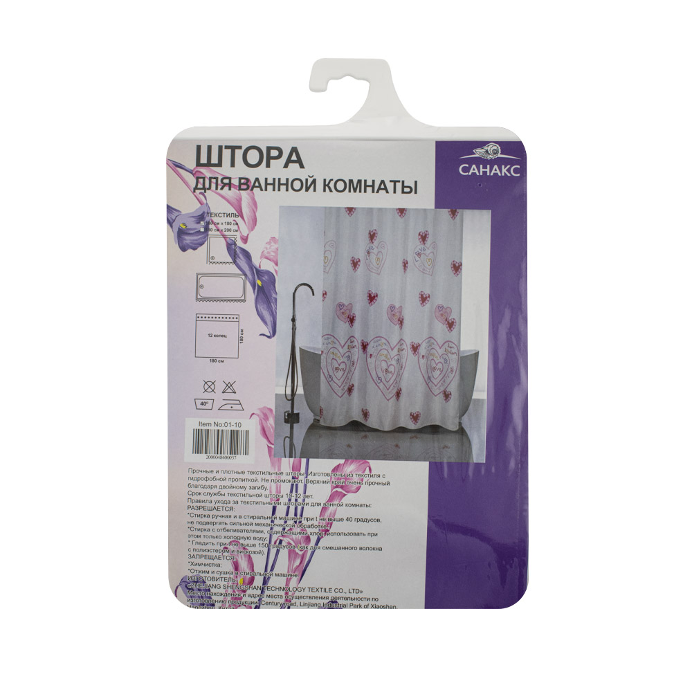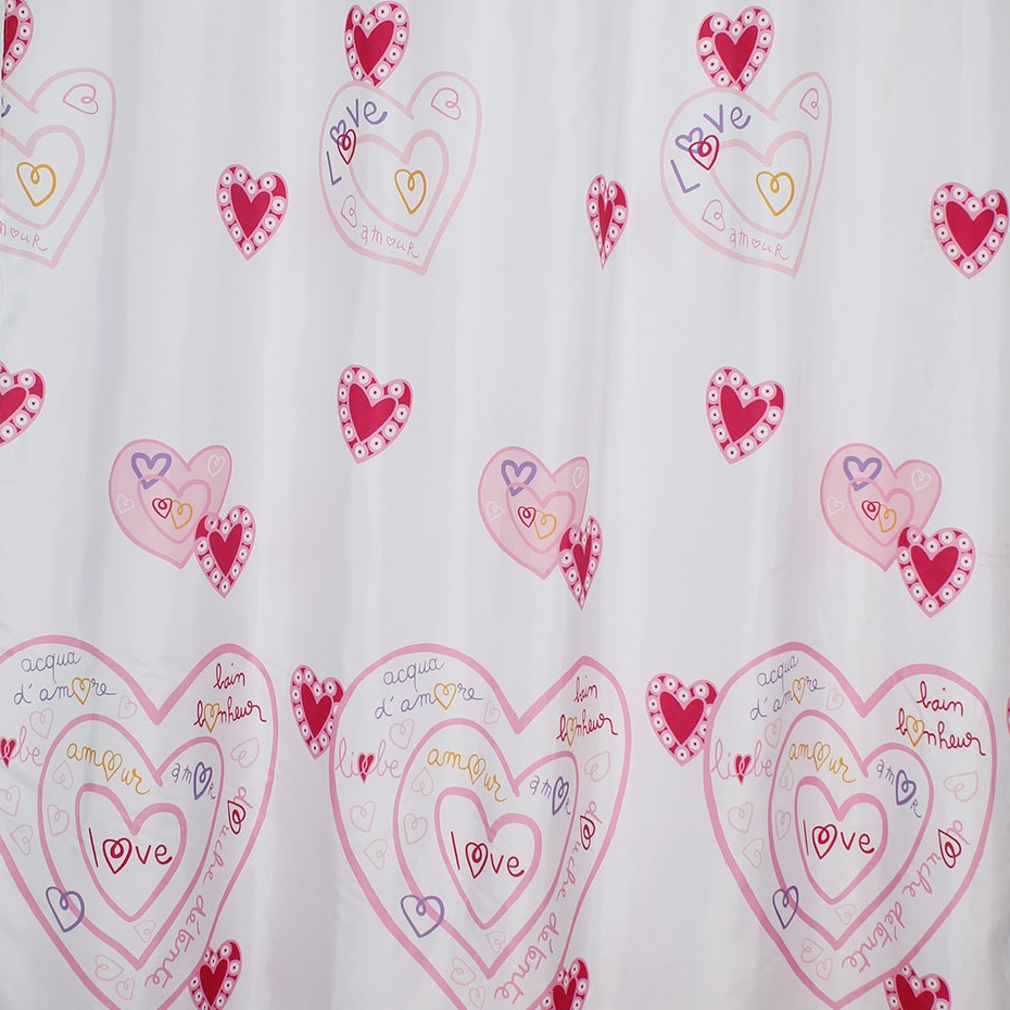Штора с рисунком, "ЛЮБОВЬ", в ванную комнату, без колец, полиэстэр
