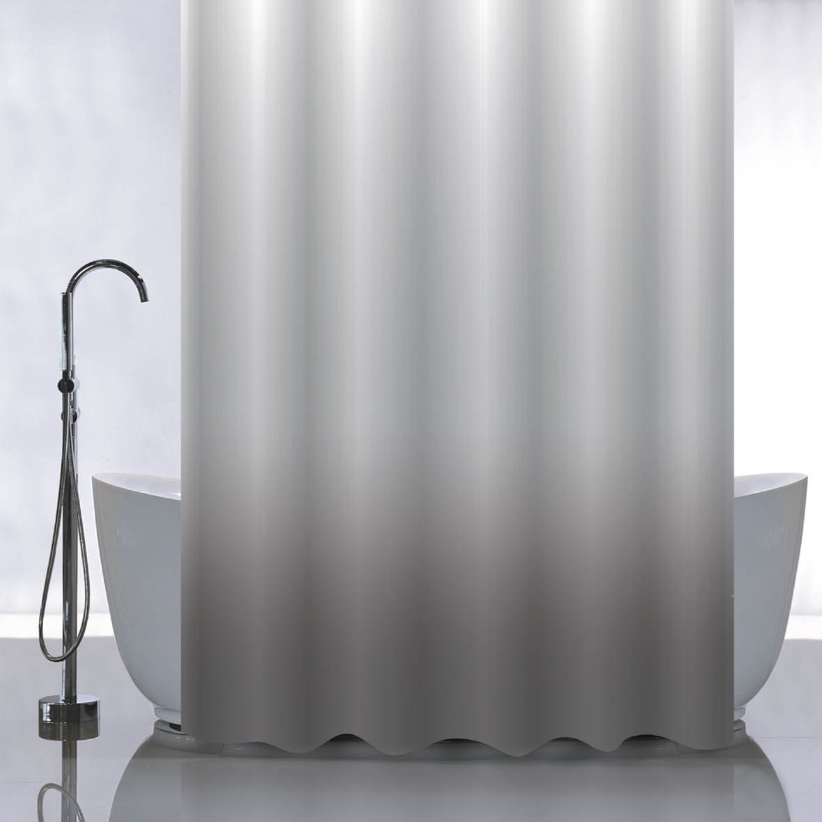 Штора с рисунком, ПЕРЕХОД - ГРАФИТ, в ванную комнату, без колец, полиэстер 180 х180 см