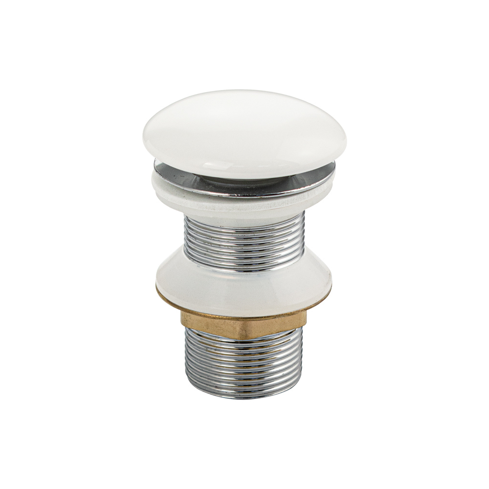 Верхняя часть (донный клапан) сифона - автомата на раковину без перелива, из нержавеющей стали, с керамической накладкой, цвет белый. Габаритные размеры: высота 95 мм, ширина 65 мм. Вес - 0.28 кг, объем - 0.00053 м3
