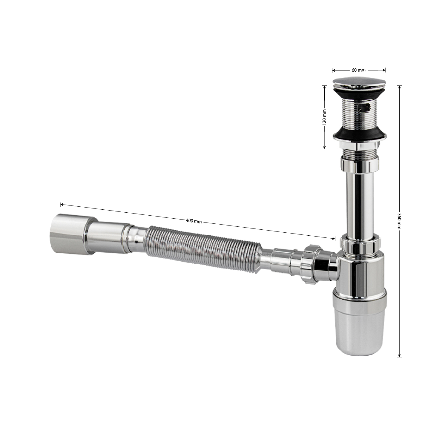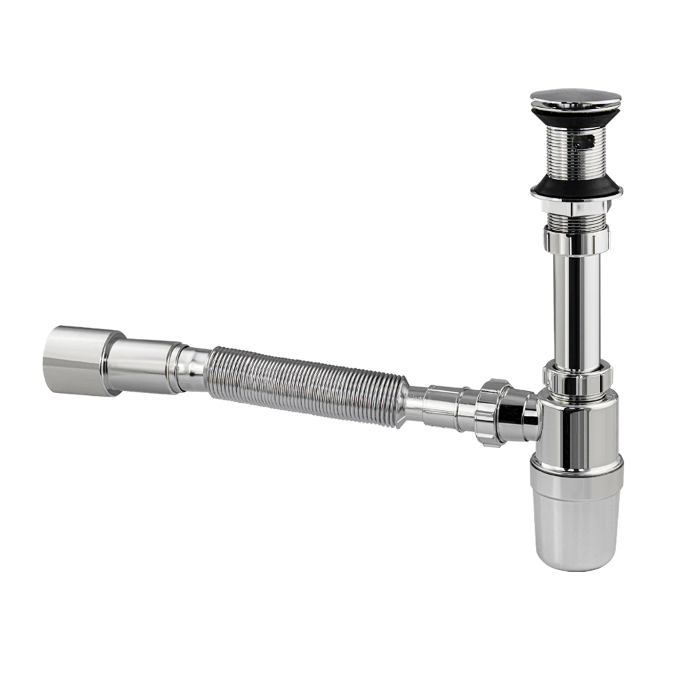Сифон для раковины из высокопрочного АБС пластика, хромированный, с системой "Клик-Клак" это эстетичное и функциональное устройство для подключения раковины к системе канализации. Бутылочная модель изготовлена из пластика, что обуславливает ее высокую прочность и долговечность. Она устойчива к перепаду температур, поэтому в раковину можно сливать кипяток. Хромированная поверхность сохраняет зеркальный блеск даже после длительной эксплуатации, поверхность не требует особого ухода – достаточно просто протереть. Изделие комплектуется гофрированной трубой с выходом для канализации 50 мм. Габаритные размеры: высота 360 мм, длина 400 мм, диаметр 32 мм. Вес - 0.32 кг, объём - 0.00307 м3