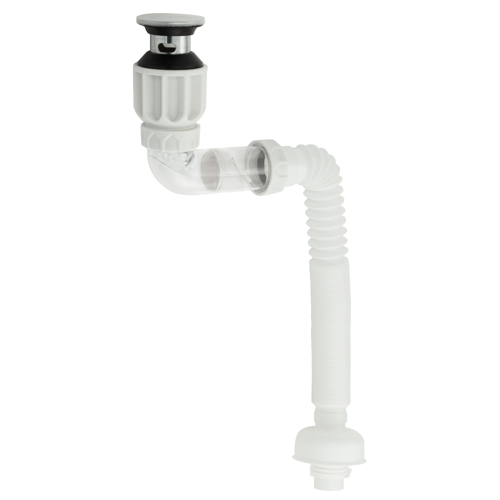 Сифон с гофрой для раковин ванной комнаты, душа или кухонной мойки, из высокопрочного пластика АБС предназначена для слива воды из мойки или раковины. Сифон комплектуется металлическим выпуском "клик-клак" с сеткой. В центре системы установлен чувствительный лепесток, который даже при незначительном попадании воды срабатывает на слив, а при отсутствии воды плотно перекрывает потоки запахов из канализации. Он герметично соединяет раковину с канализационной сетью. Гофрированный сифон блокирует неприятные запахи из канализации. В трубе всегда есть небольшое количество воды, которая и предотвращает появление неприятных запахов. Регулируемая длина гофры позволяет установить раковину на нужном расстоянии от канализации. Качественный водопровод — залог чистоты в ванной комнате. Габаритные размеры: диаметр присоединительного отверстия 50 мм, диаметр стока 60 мм, длина 400-900 мм. Вес - 0,600 кг, объём - 0,00400 м3.