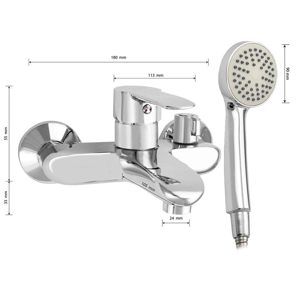 Смеситель в ванную / душевую комнату хромированный с коротким изливом, литой корпус, шаровый, с поворотным дивертором м/к на корпусе. Материал изготовления — ЦАМ (цинк-алюминий-медь). Картридж d = 35 мм, литая ручка, аэратор для экономии воды, чашки и эксцентрики из нержавеющей стали. Габаритные размеры: ширина 150 мм, высота корпуса 90 мм, длина излива 150 мм, круглая душевая лейка d = 75 мм, шланг 150 см. Вес - 1,800 кг, объём - 0,00454 м3. В комплекте паспорт, корпус с изливом, дивертор, душевая лейка, шланг, кронштейн, комплект крепежа и прокладок.