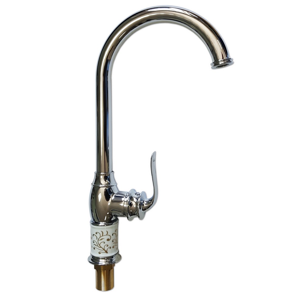 Смеситель для кухни , ХРОМ с белой керамичекой вставкой на корпусе , шаровый
