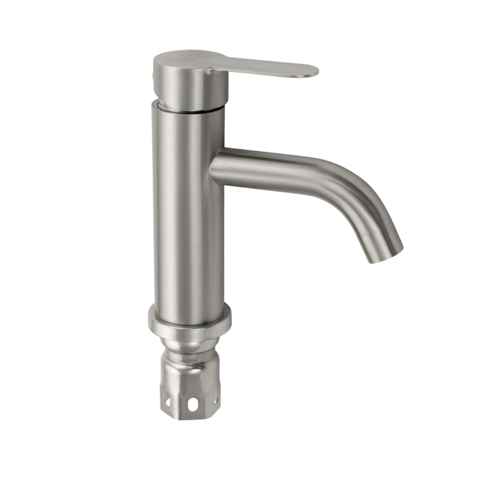 Смеситель для раковины, матовый литой корпус, из нержавеющей стали марки 304, с коротким литым изогнутым изливом, литая ручка, шаровый. Крепление резьба - гайка, картридж d = 35 мм. Аэратор для экономии воды. Такая модель может использоваться на домашней кухне, на даче, в медицинских учреждениях и общественных местах. Габаритные размеры: высота 165 мм, длина 160 мм, длина излива 55 мм, диаметр посадочного седла 52 мм, длина резьбы 60 мм, длина подводки 450 мм. Вес - 1,000 кг, объём - 0,0024 м3. В комплекте паспорт, корпус, подводка 1/2, крепеж, набор прокладок.