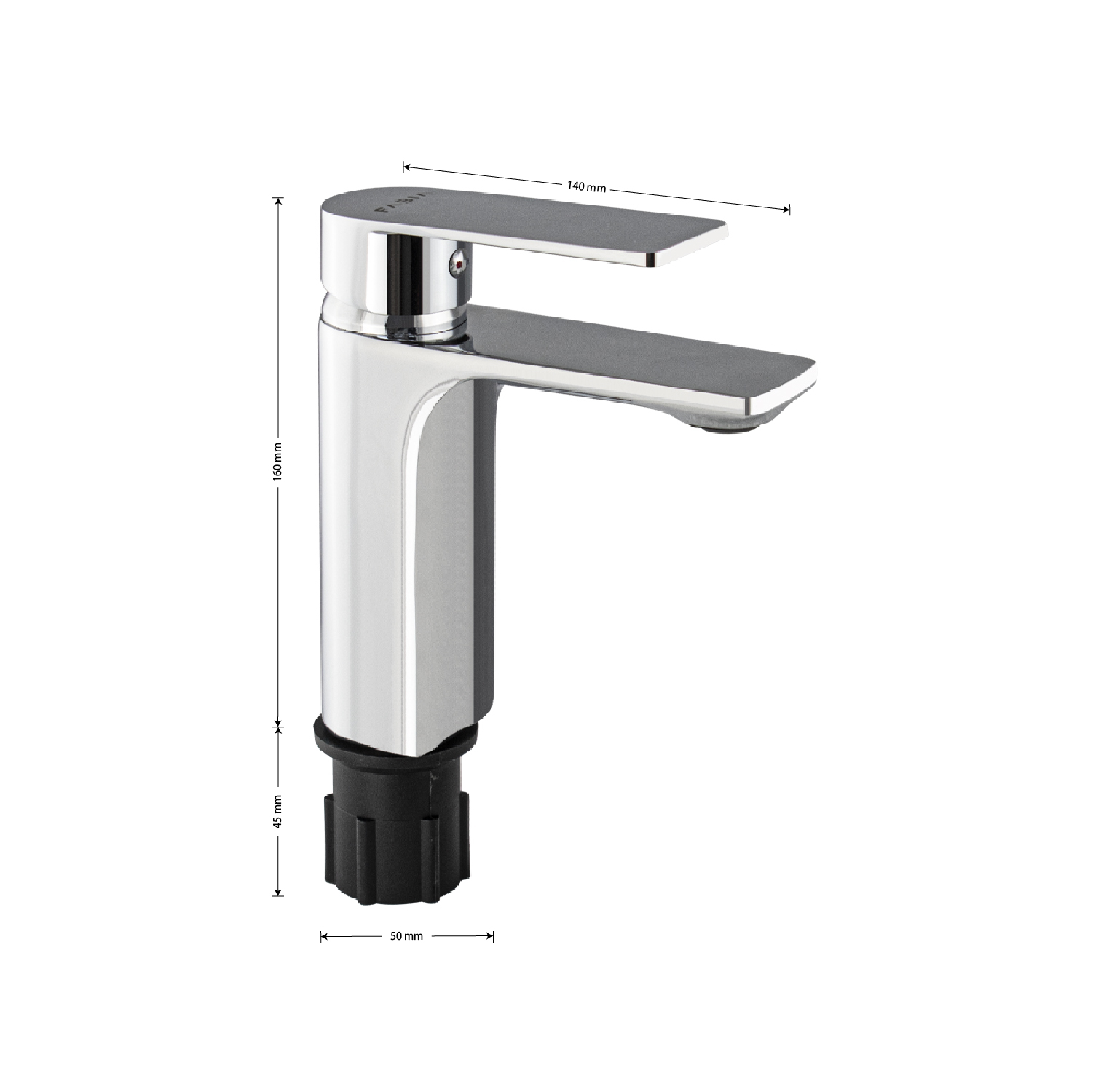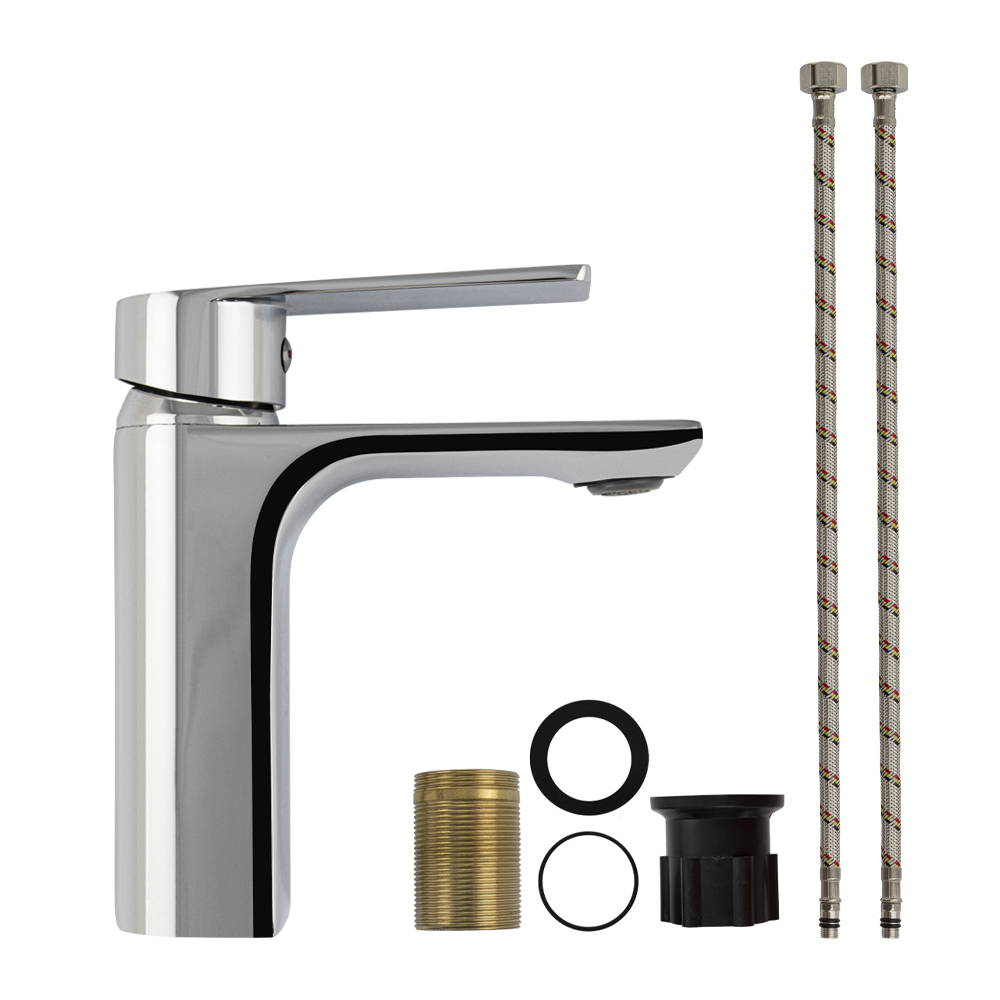Смеситель для раковины, литой корпус, цвет хром, с прямым изливом, ручка литая, шаровый. Крепление резьба - гайка, картридж d = 35 мм. Аэратор для экономии воды. Такая модель может использоваться на домашней кухне, на даче, в медицинских учреждениях и общественных местах. Габаритные размеры: высота 160 мм, длина 150 мм, посадочное седло 50 мм, длина резьбы 45 мм, длина подводки 150 см. Вес - кг, объём - м3. В комплекте паспорт, корпус, подводка 1/2, крепеж, набор прокладок.