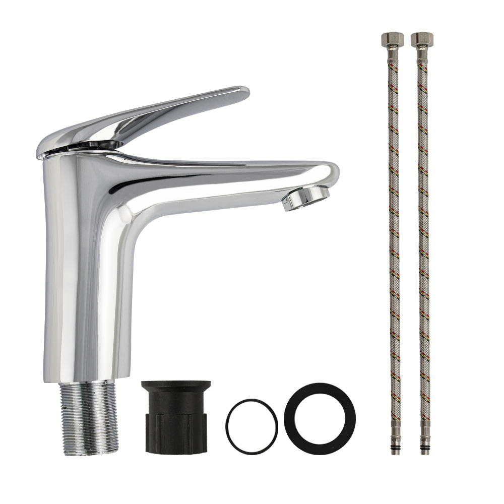 Смеситель для раковины, литой корпус, цвет хром, с прямым плоским изливом, ручка литая, шаровый. Крепление резьба - гайка, картридж d = 35 мм. Аэратор для экономии воды. Такая модель может использоваться на домашней кухне, на даче, в медицинских учреждениях и общественных местах. Габаритные размеры: высота мм, длина мм, посадочное седло мм, длина резьбы мм, длина подводки мм. Вес - 1,07 кг, объём - 0,00239 м3. В комплекте паспорт, корпус, подводка 1/2, крепеж, набор прокладок.