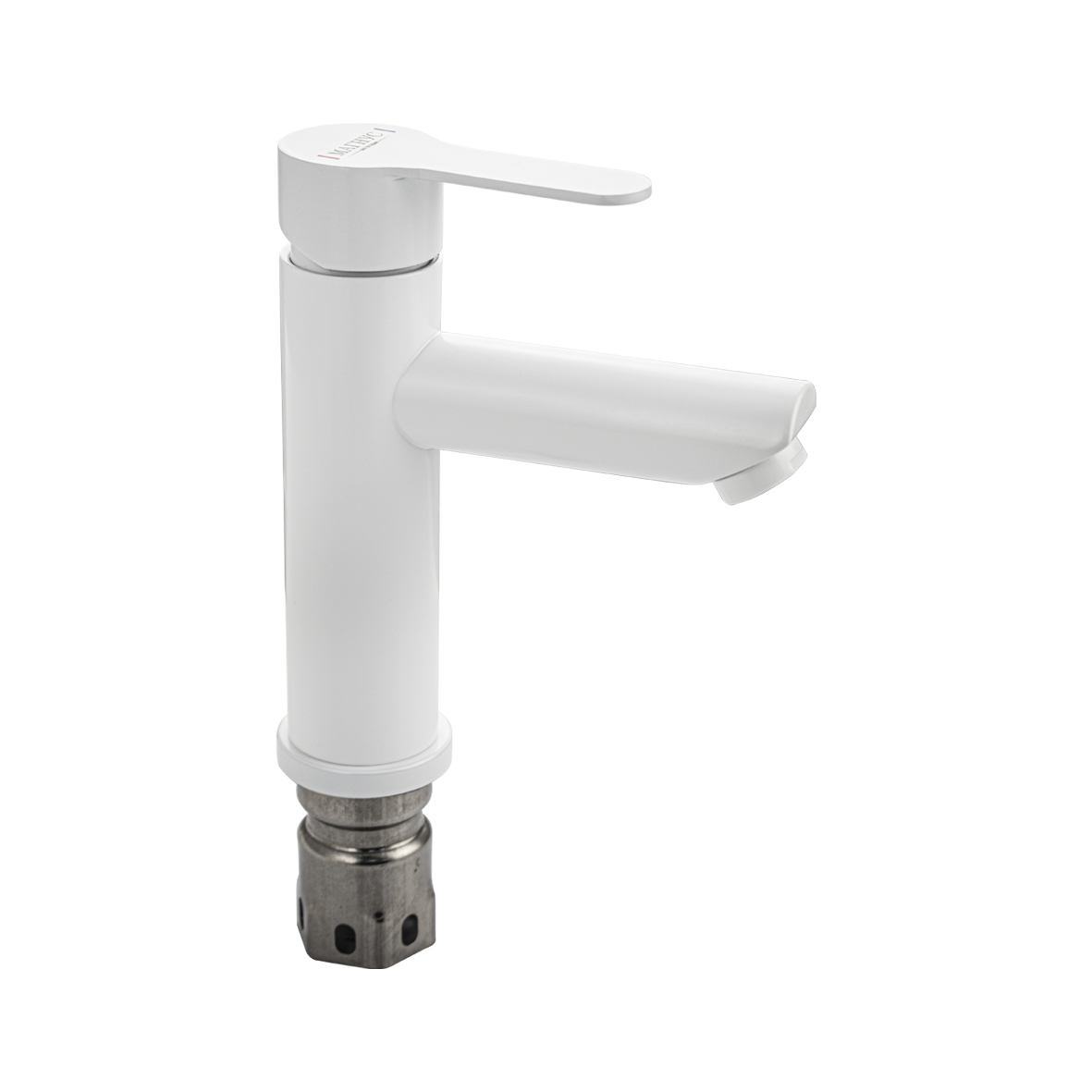 Смеситель для раковины, матовый литой корпус белого цвета, из нержавеющей стали марки 201, с коротким литым изливом, литая ручка, шаровый. Крепление резьба - гайка, картридж d = 35 мм. Аэратор для экономии воды. Такая модель может использоваться на домашней кухне, на даче, в медицинских учреждениях и общественных местах. Габаритные размеры: высота 175 мм, длина 140 мм, диаметр посадочного седла 50 мм, длина резьбы 55 мм, длина подводки 450 мм. Вес - 0.8 кг, объём - 0.002 м3. В комплекте паспорт, корпус, подводка 1/2, крепеж, набор прокладок.