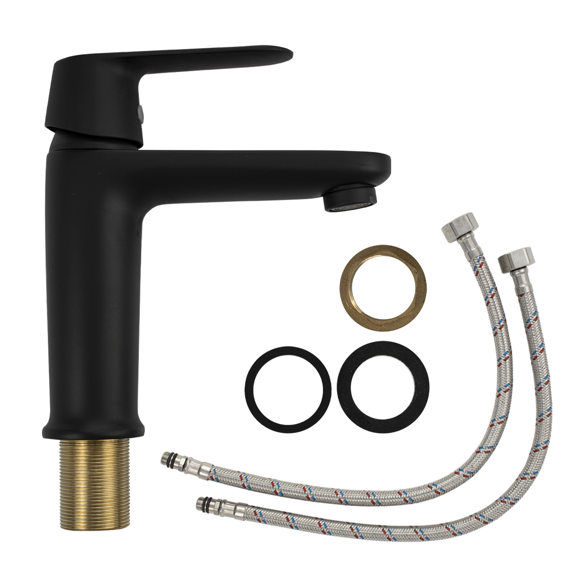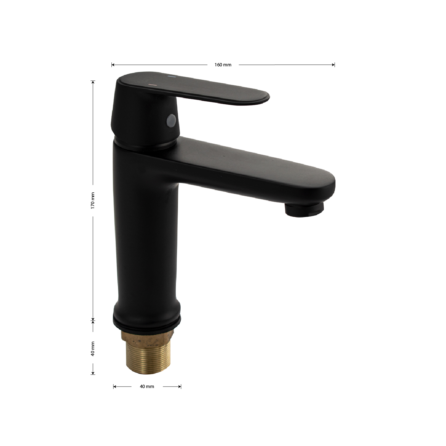 Смеситель для раковины, литой корпус, цвет чёрный, с прямым плоским изливом, ручка литая, шаровый. Крепление резьба - гайка, картридж d = 35 мм. Аэратор для экономии воды. Такая модель может использоваться на домашней кухне, на даче, в медицинских учреждениях и общественных местах. Габаритные размеры: высота 170 мм, длина 160 мм, посадочное седло 40 мм, длина резьбы 40 мм, длина подводки 500 мм. Вес - 1.100 кг, объём - 0,00325 м3. В комплекте паспорт, корпус, подводка 1/2, крепеж, набор прокладок.
