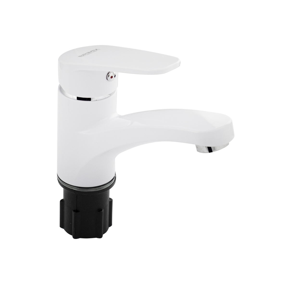 Смеситель для раковины, из высокопрочного пластика АБС, БЕЛЫЙ с коротким изливом, литой корпус, литая ручка, шаровый. Крепление резьба - гайка, картридж d = 40 мм. хромированный аэратор для экономии воды. Габаритные размеры: высота 120 мм, длина 150 мм, диаметр посадочного седла 45 мм, длина резьбы 45 мм, длина подводки 500 мм. Вес - 0,72 кг, объём - 0,00220 м3. В комплекте паспорт, корпус, пластиковая подводка с латунными штуцерами 1/2, крепеж, набор прокладок.