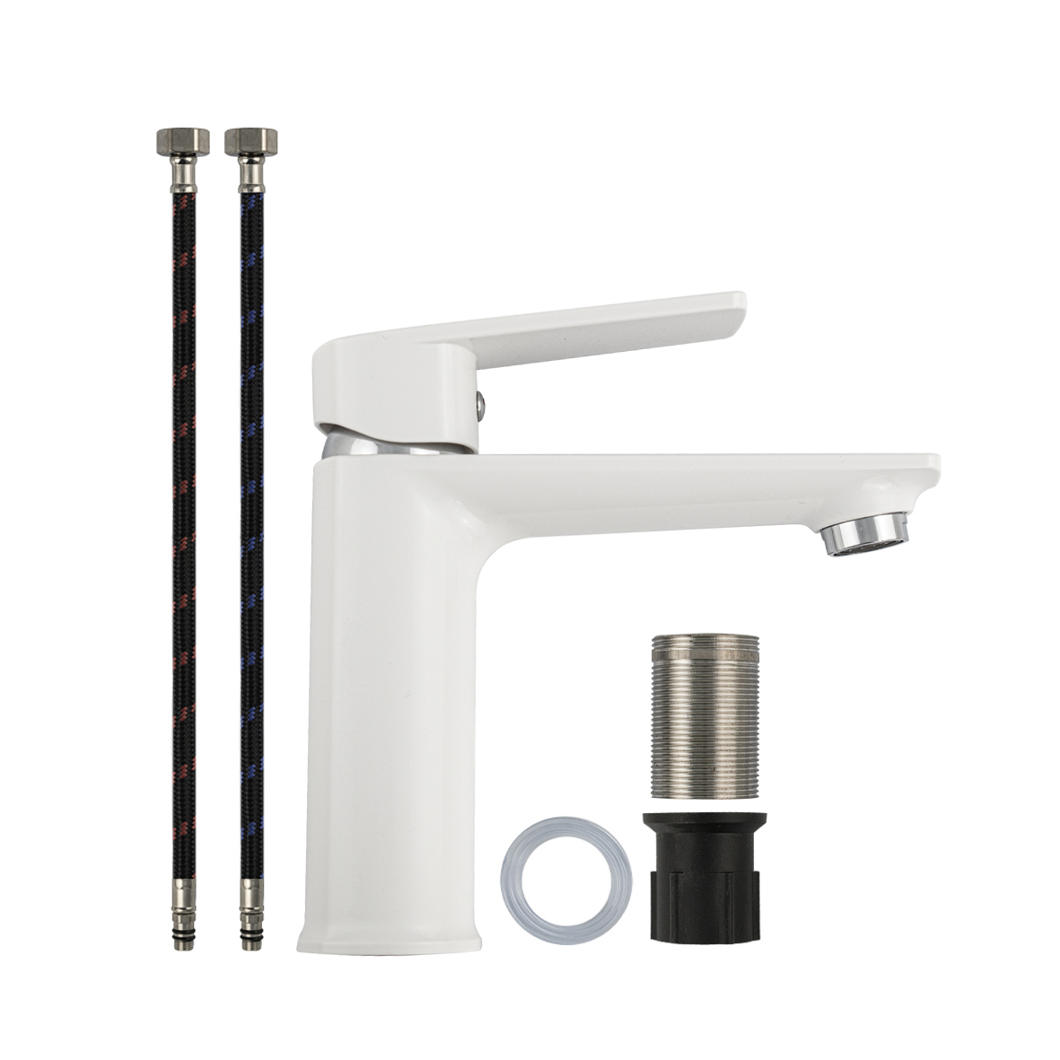Смеситель для раковины, из высокопрочного пластика АБС, БЕЛЫЙ с коротким изливом, литой корпус, литая ручка, шаровый. Крепление резьба - гайка, картридж d = 40 мм. хромированный аэратор для экономии воды. Габаритные размеры: высота 170 мм, длина 170 мм, диаметр посадочного седла 45 мм, длина резьбы 50 мм, длина подводки 450 мм. Вес - кг, объём - м3. В комплекте паспорт, корпус, пластиковая подводка с латунными штуцерами 1/2, крепеж, набор прокладок.