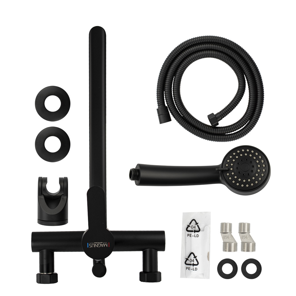 Смеситель цвет черный, из нержавеющей стали марки 304 в ванную / душевую комнату, с поворотным длинным плоским изливом. Картридж d = мм, ручка литая. Дутый, большой круглый корпус с дивертором м/к на корпусе, аэратор для экономии воды, чашки, гайки и эксцентрики из нержавеющей стали. Габаритные размеры: ширина 150 мм, высота 140 мм, длина излива 340 мм, диаметр чашки 60 мм, длина шланга 150 см, лейка d = 80 мм. Вес - 1.89 кг, объём - 0.00757 м3. В комплекте корпус с изливом, дивертор, кронштейн, паспорт, крепёж, прокладки, лейка, шланг.