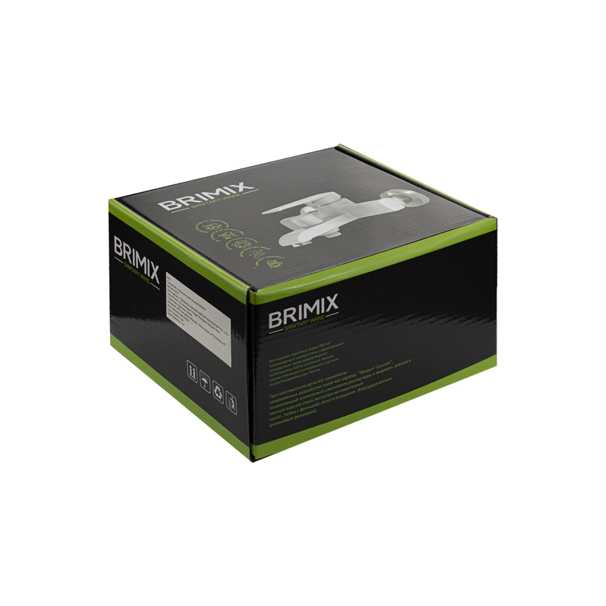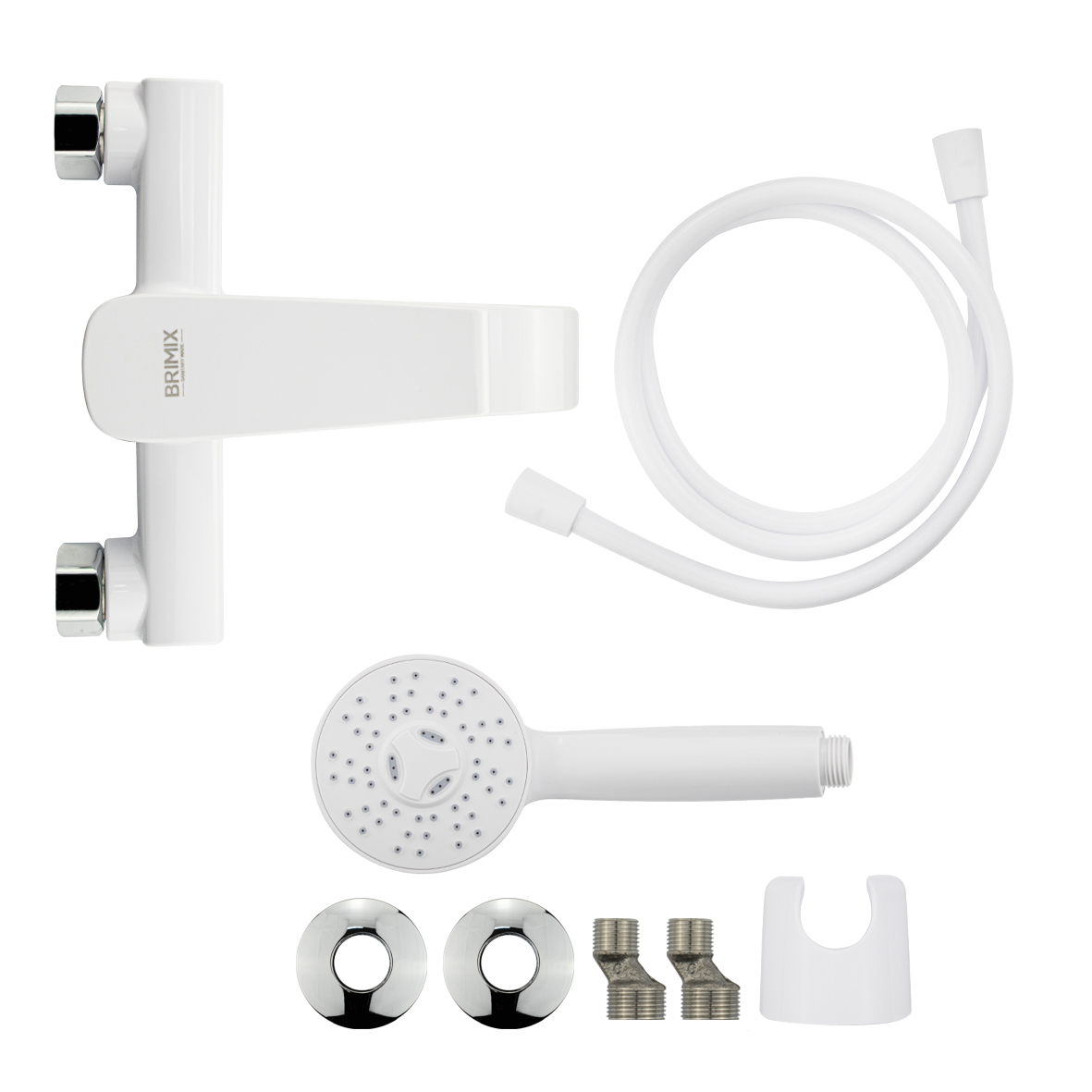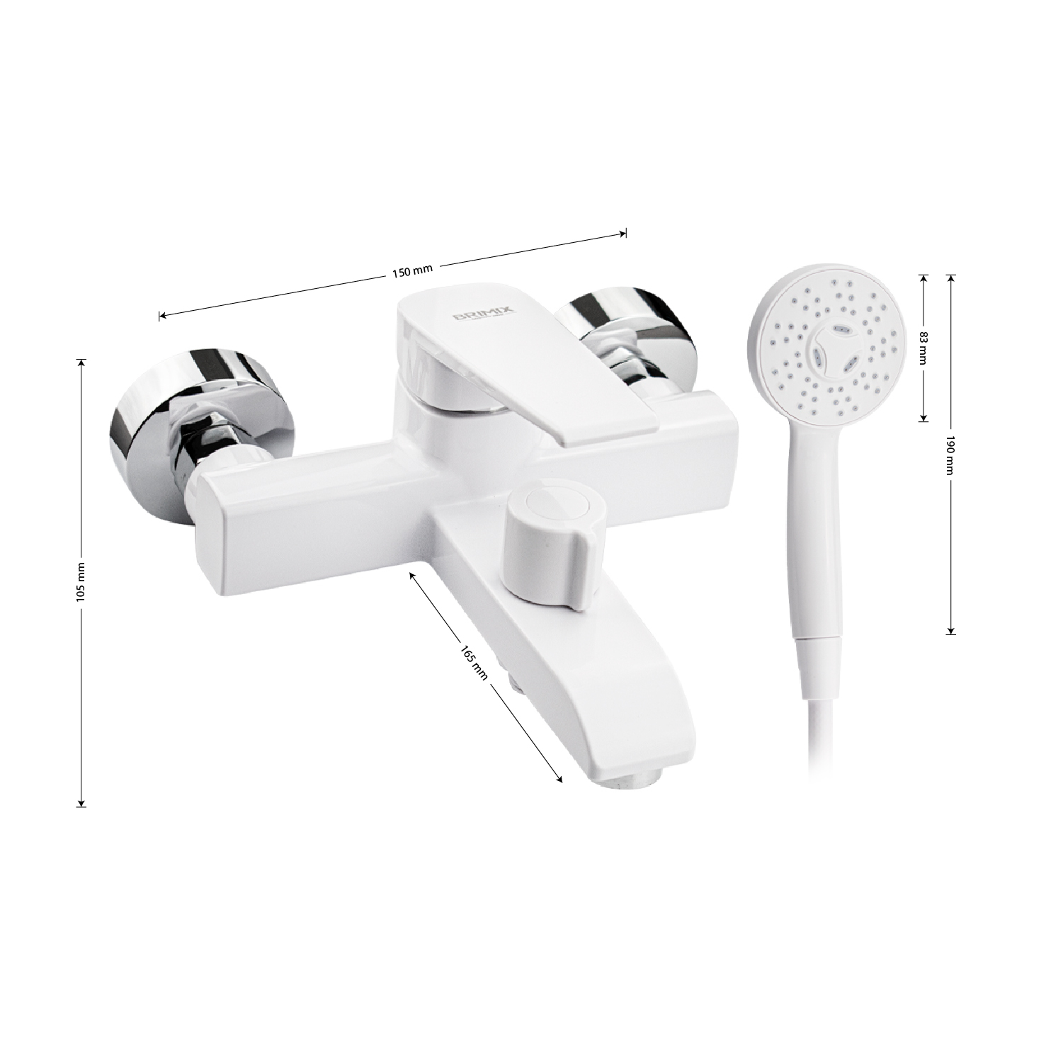 Смеситель из высокопрочного пластика АБС, БЕЛЫЙ в ванную / душевую комнату с коротким изливом, литой квадратный корпус, шаровый, с дивертором м/к на корпусе. Картридж d = 40 мм, литая ручка, хромированный аэратор для экономии воды, хромированные чашки и эксцентрики. Габаритные размеры: ширина 150 мм, высота корпуса 105 мм, длина 165 мм, душевая лейка d = 83 мм, шланг 150 см. Вес - 0,81 кг, объём - 0,00514 м3. В комплекте паспорт, корпус с изливом, дивертор, душевая лейка, шланг, кронштейн, комплект крепежа и прокладок.