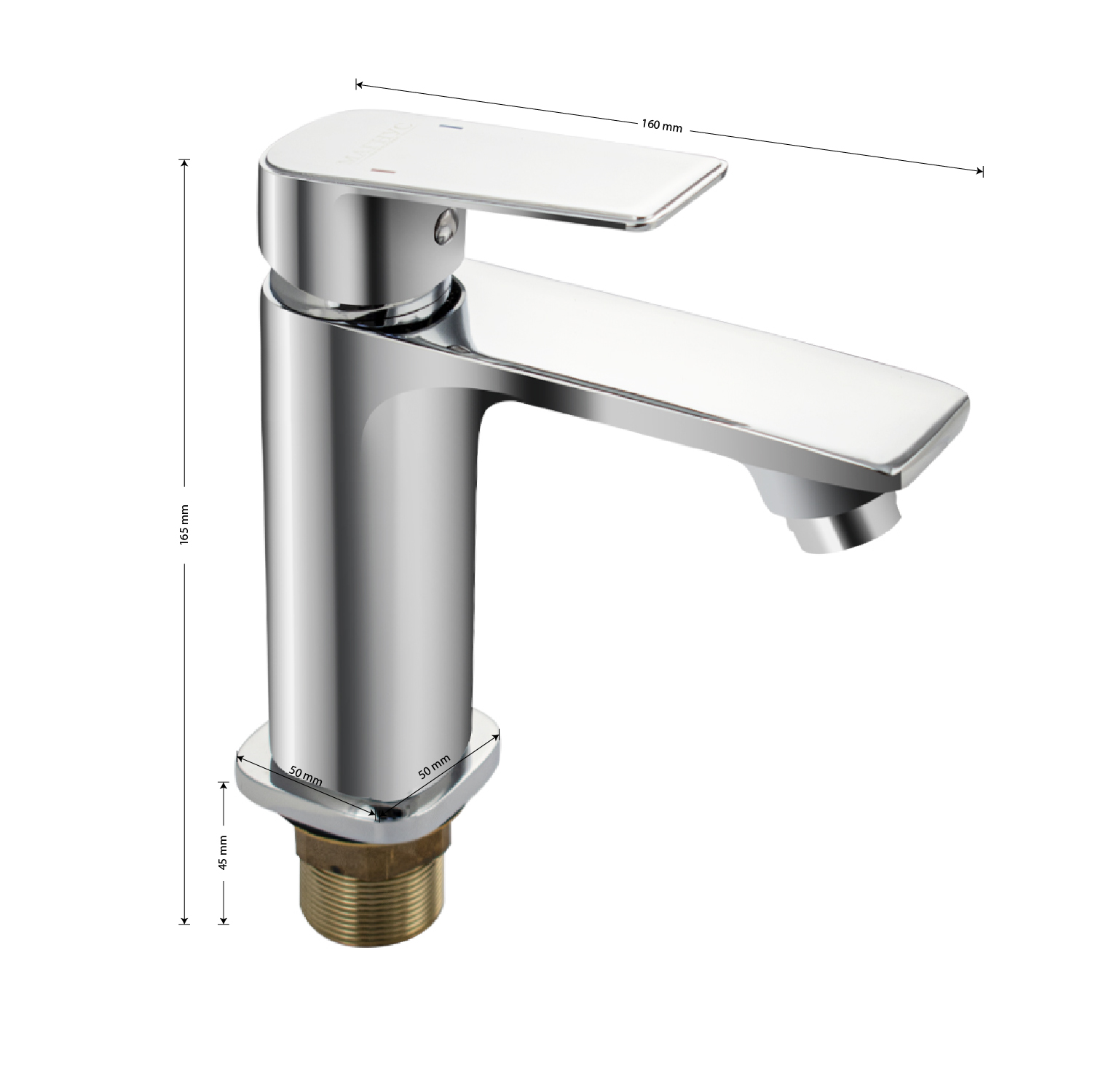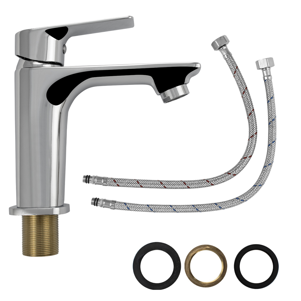 Смеситель для раковины, латунный квадратный корпус, хромированный, с коротким изливом, литой корпус, литая ручка, шаровый. Крепление резьба - гайка, картридж d = 40 мм. Аэратор для экономии воды. Габаритные размеры: высота 150 мм, длина 155 мм, длина излива 110 мм, диаметр посадочного седла 55х43 мм, длина резьбы 50 мм, длина подводки 400 мм. Вес - 1,100 кг, объём - 0,00278 м3. В комплекте паспорт, корпус, подводка 1/2, крепеж, набор прокладок.