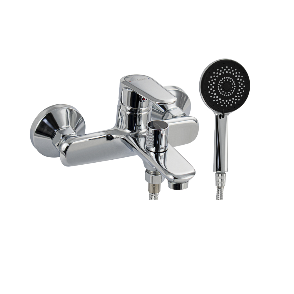 Смеситель хромированный в ванную / душевую комнату с коротким изливом, литой корпус, шаровый, поворотный дивертор на корпусе. Материал изготовления — ЦАМ (цинк-алюминий-медь) + нержавеющая сталь. Картридж d = 35 мм, литая ручка, аэратор для экономии воды, чашки и эксцентрики. Габаритные размеры: ширина 150 мм, высота корпуса 100 мм, длина излива 140 мм, диаметр душевой лейки 105 мм, шланг 150 см. Вес - 1.64 кг, объём - 0.00557 м3. В комплекте паспорт, корпус с изливом, дивертор, душевая лейка, шланг, кронштейн, комплект крепежа и прокладок.