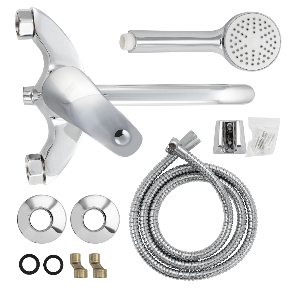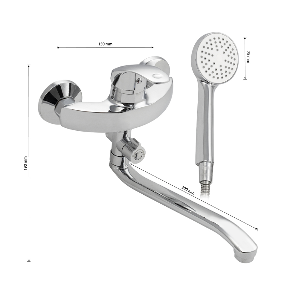 Смеситель хромированный в ванную / душевую комнату с длинным, плоским изливом, изогнутый дутый корпус, шаровый, с дивертором м/к. Материал изготовления — ЦАМ (цинк-алюминий-медь) + нержавеющая сталь. Картридж d = 40 мм, ручка литая, аэратор для экономии воды, чашки и эксцентрики. Габаритные размеры: ширина 150 мм, высота корпуса 190 мм, длина излива 300 мм, душевая лейка d = 78 мм, шланг 150 см. Вес - 1,400 кг, объём - 0,00435 м3. В комплекте паспорт, корпус с изливом, дивертор, душевая лейка, шланг, кронштейн, комплект крепежа и прокладок.