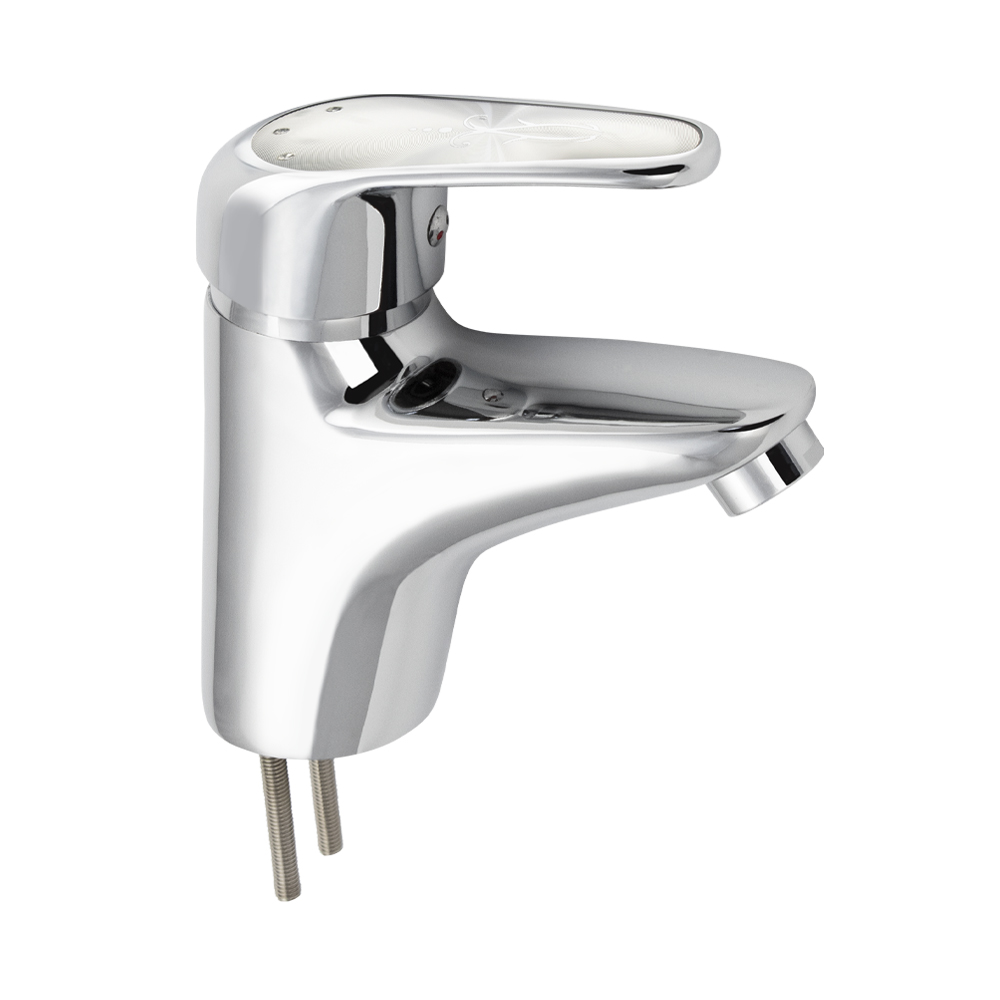 Смеситель для раковины, хромированный, с коротким изливом, литой корпус, сатеновая ручка с узором, шаровый. Материал изготовления — ЦАМ (цинк-алюминий-медь) + нержавеющая сталь. Крепление на шпильках, картридж d = 40 мм. Аэратор для экономии воды. Габаритные размеры: высота 150 мм, длина 140 мм, длина излива 90 мм, диаметр посадочного седла 50 мм, длина резьбы 40 мм, длина подводки 400 мм. Вес - 1,200 кг, объём - 0,00200 м3. В комплекте паспорт, корпус, подводка 1/2, крепеж, набор прокладок.