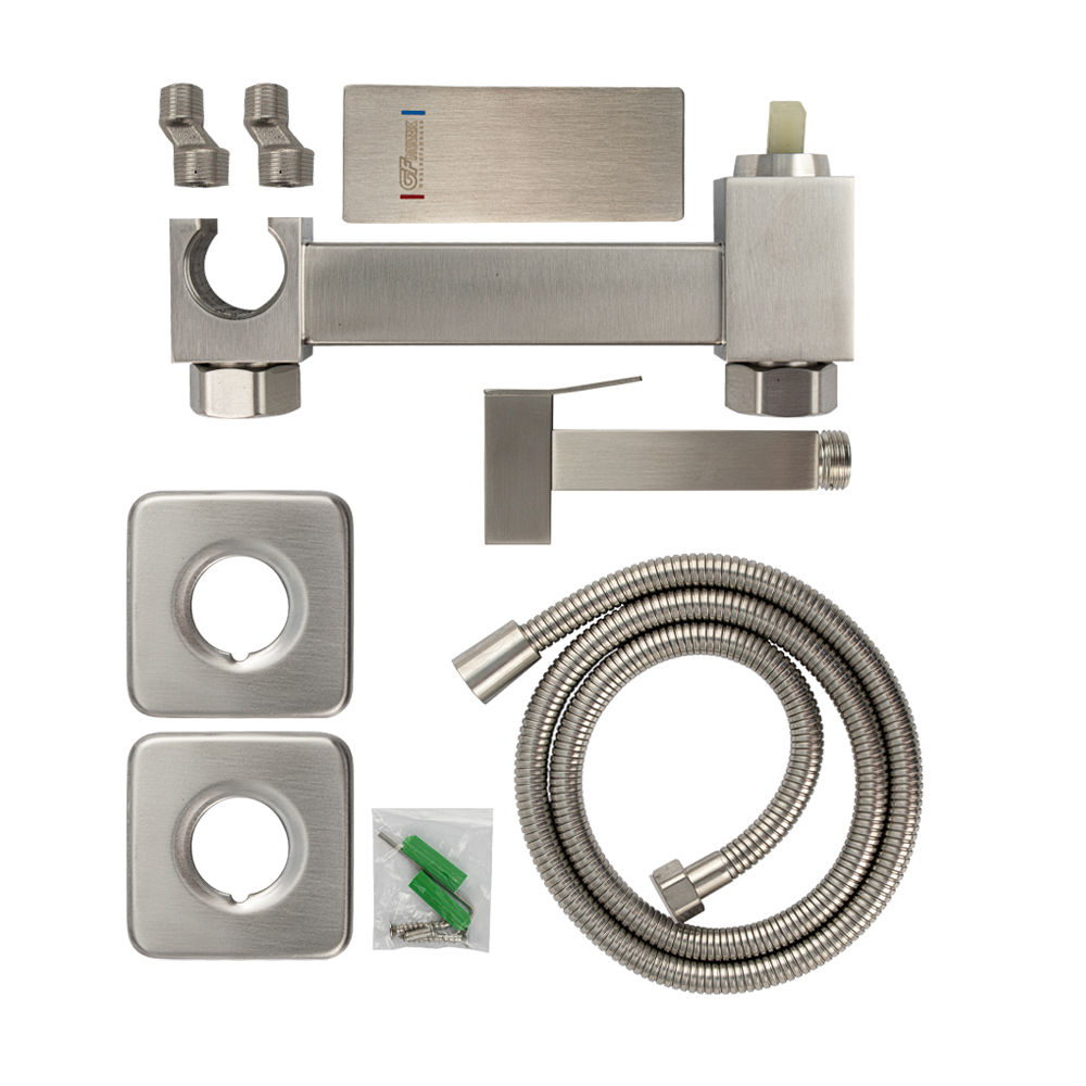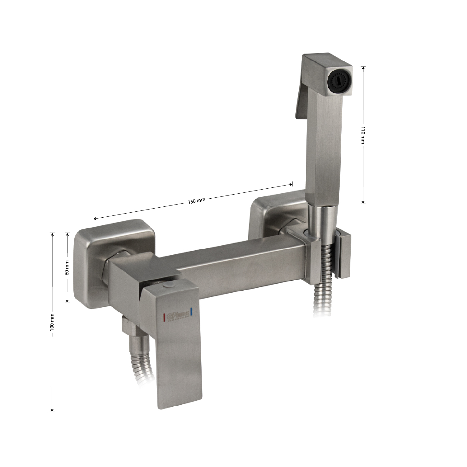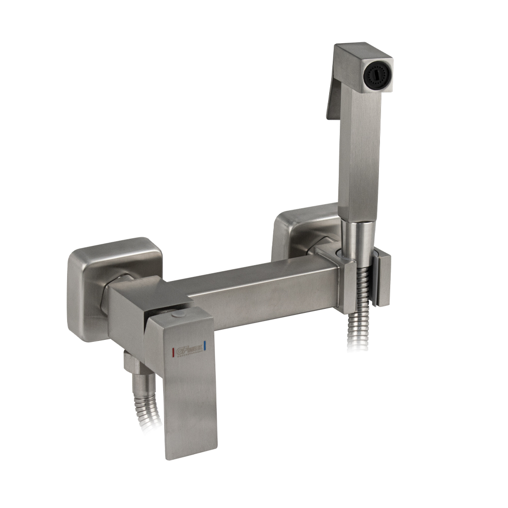 Смеситель с гигиеническим душем, из нержавеющей стали. Создаст комфортные условия для поддержания гигиены. Керамический картридж смешивает воду строго до желаемой температуры и подает ее с регулируемым напором. Управление осуществляется плавным и легким поворотом рычага. Эргономичная лейка включается за счет нажимного механизма. Она изготовлена из экологически безопасного материала, не подверженного коррозии и механическим деформациям. Матовое покрытие придает ей эстетичный вид. Габаритные размеры: ширина корпуса 150 мм, высота лейки 110 мм, длина шланга 120 см, чашка 60*60 мм. Вес - 1.56 кг, объём - 0.00414 м3. В комплект входит корпус, лейка, смеситель, душевой шлан, крепёж