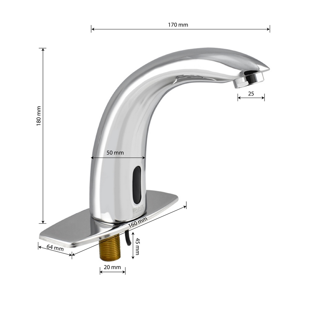 Сенсорный смеситель предназначен для монтажа в жилых домах и общественных помещениях. Изделие выполнено в стиле хай-тек из высококачественного материала с хромовым покрытием, обеспечивающим устойчивость к механическим воздействиям. Кран смешивания горячей и холодной воды с возможностью регулировки размещается под столешницей. Кран включится, если поднести руки к изливу. Бесконтактный принцип работы гарантирует гигиеничность устройства. Устройство снабжено аэратором, позволяющей очистку без использования дополнительных средств. Он насыщает воду воздухом для создания струи, комфортной для гигиенических процедур, и сокращения расхода ценного ресурса. Сенсорный смеситель включает поток воды за счет фотоэлемента. Универсальное питание DC 6V (4 батареи типа "АА", в комплектацию не входят), AC/DC 6V AC 220V (50/60Hz). Габаритные размеры основания 160 х 64 мм, высота 180 мм, длина излива 170 мм. Вес - 2,000 кг, объём - 0,00621 м3. В комплекте паспорт, корпус, нижняя часть с программным управлением, крепёж.