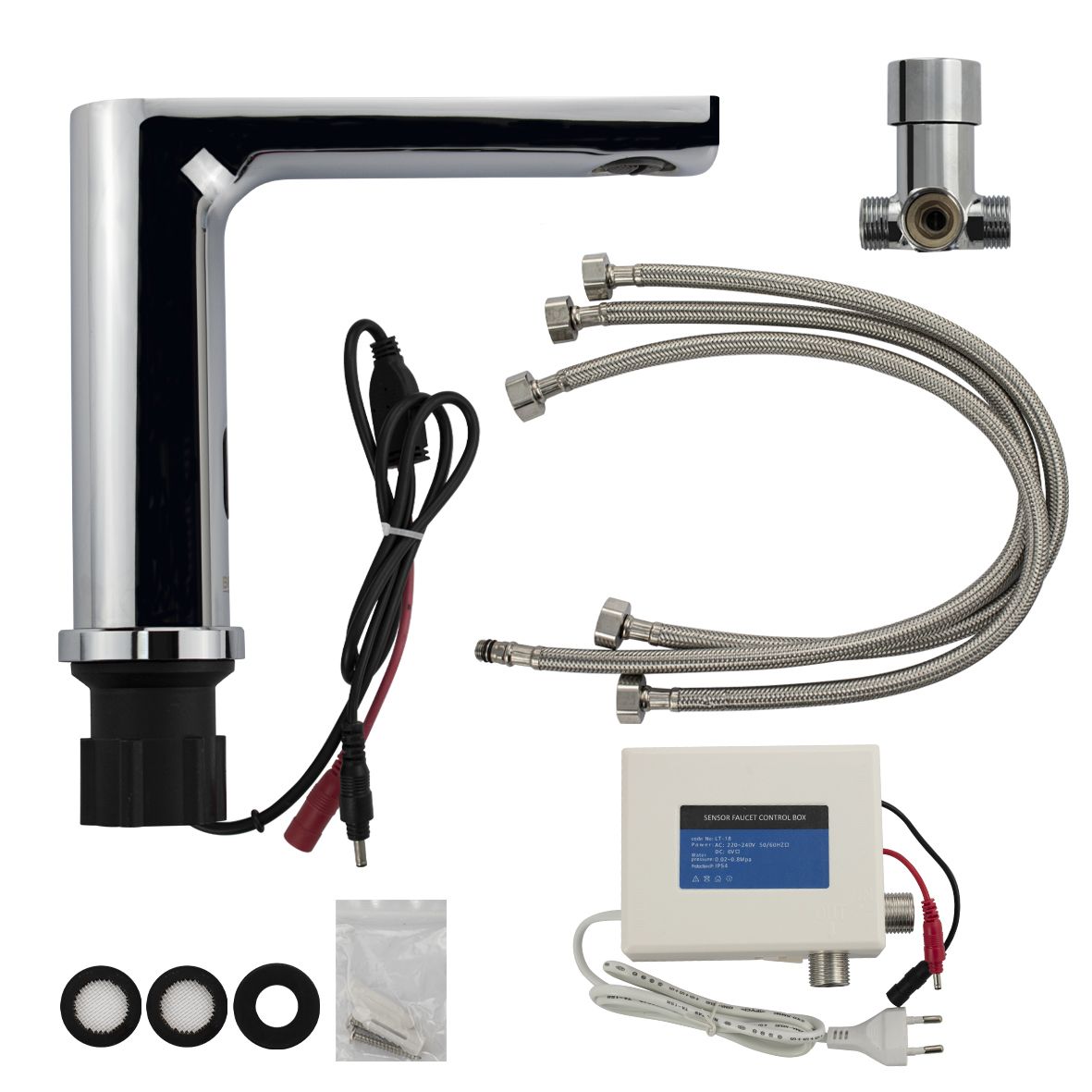 Сенсорный смеситель на раковину предназначен для монтажа в жилых домах и общественных помещениях. С возможностью подключения к сети и работы от батареек. Изделие выполнено в стиле хай-тек из высококачественного материала - нержавеющая сталь, хромированный цвет обеспечивает устойчивость к механическим воздействиям. Кран смешивания горячей и холодной воды с возможностью регулировки размещается под столешницей. Кран включится, если поднести руки к изливу. Бесконтактный принцип работы гарантирует гигиеничность устройства. Устройство снабжено аэратором, позволяющей очистку без использования дополнительных средств. Он насыщает воду воздухом для создания струи, комфортной для гигиенических процедур, и сокращения расхода ценного ресурса. Сенсорный смеситель включает поток воды за счет фотоэлемента. Универсальное питание DC 6V (4 батареи типа "АА", в комплектацию не входят), AC/DC 6V AC 220V (50/60Hz).Габаритные размеры: диаметр посадочного седла 50 мм, высота 160 мм, длина излива 190 мм. Вес - 1,9 кг, объём - 0,0063