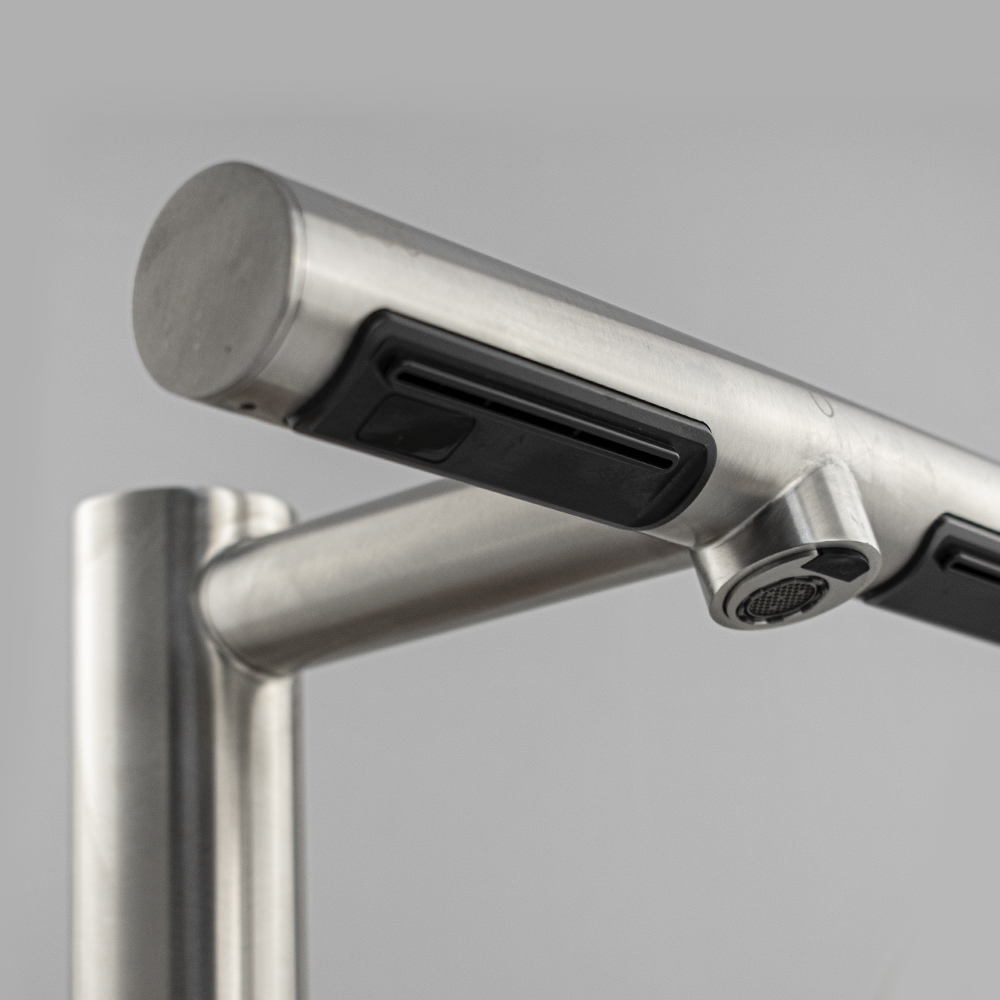 Смеситель сенсорный со встроенной сушилкой для рук GFmark разработан специально для общественных мест с большой проходимостью. При использовании данной модели нет необходимости перемещаться от смесителя воды к сушилке для рук, так же исчезает проблема с разбрызгиванием капель воды, как это происходит при использовании стандартной сушилки для рук. Преимуществом данном модели так же является экономия пространства в общественном месте. Мощность сушилки для рук 1200Вт. Скорость воздушного потока 95 м/сек