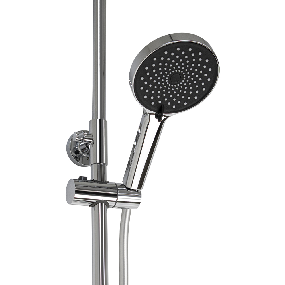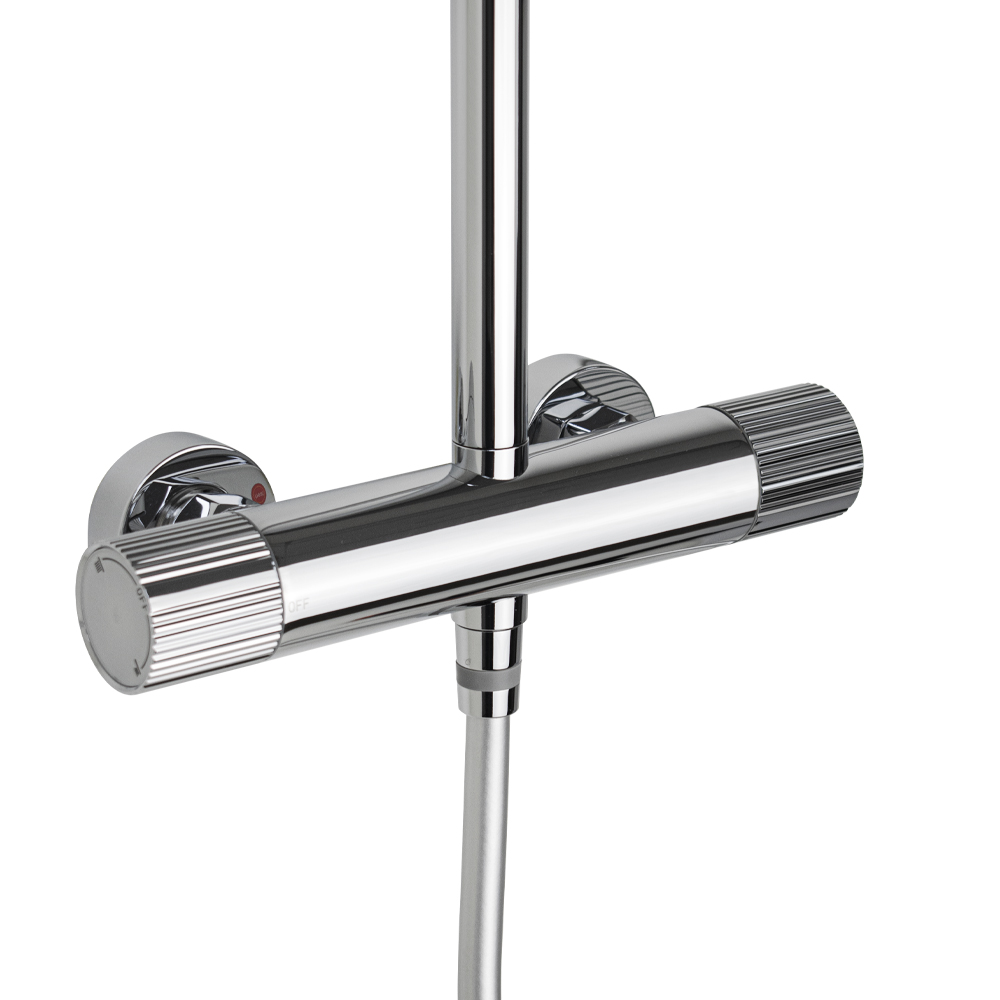 Смеситель термостатический + стойка душевая телескопическая "тропический душ" – надежное сантехническое оборудование. Хромированный круглый корпус без излива. Температура и напор воды устанавливаются поворотом двух удобных рукояток. Термостат поддерживает заданную температуру воды и может работать в системах низкого давления с газовыми проточными водонагревателями. Ограничитель температуры до 38 градусов спасает от возможного ожога при случайном повороте рукоятки. Встроенный аэратор формирует комфортный и приятный поток воды. Сеточка легко снимается для удаления налета. Аксессуар оснащен термостатическим картриджем с шумоподавлением и керамической кран-буксой, стойка с двумя хромированными лейками и хромированным шлангом. Габаритные размеры: высота стойки 800-1200 мм, длина излива стойки 360 мм, лейка для душа 130 мм двухрежимная, лейка тропического душа  255 мм, ширина смесителя 150 мм, высота смесителя 55 мм, шланг  150 см. Вес - 3.97 кг, объём - 0.02941 м3. В комплекте корпус, стойка, 2 лейки, шланг, паспо