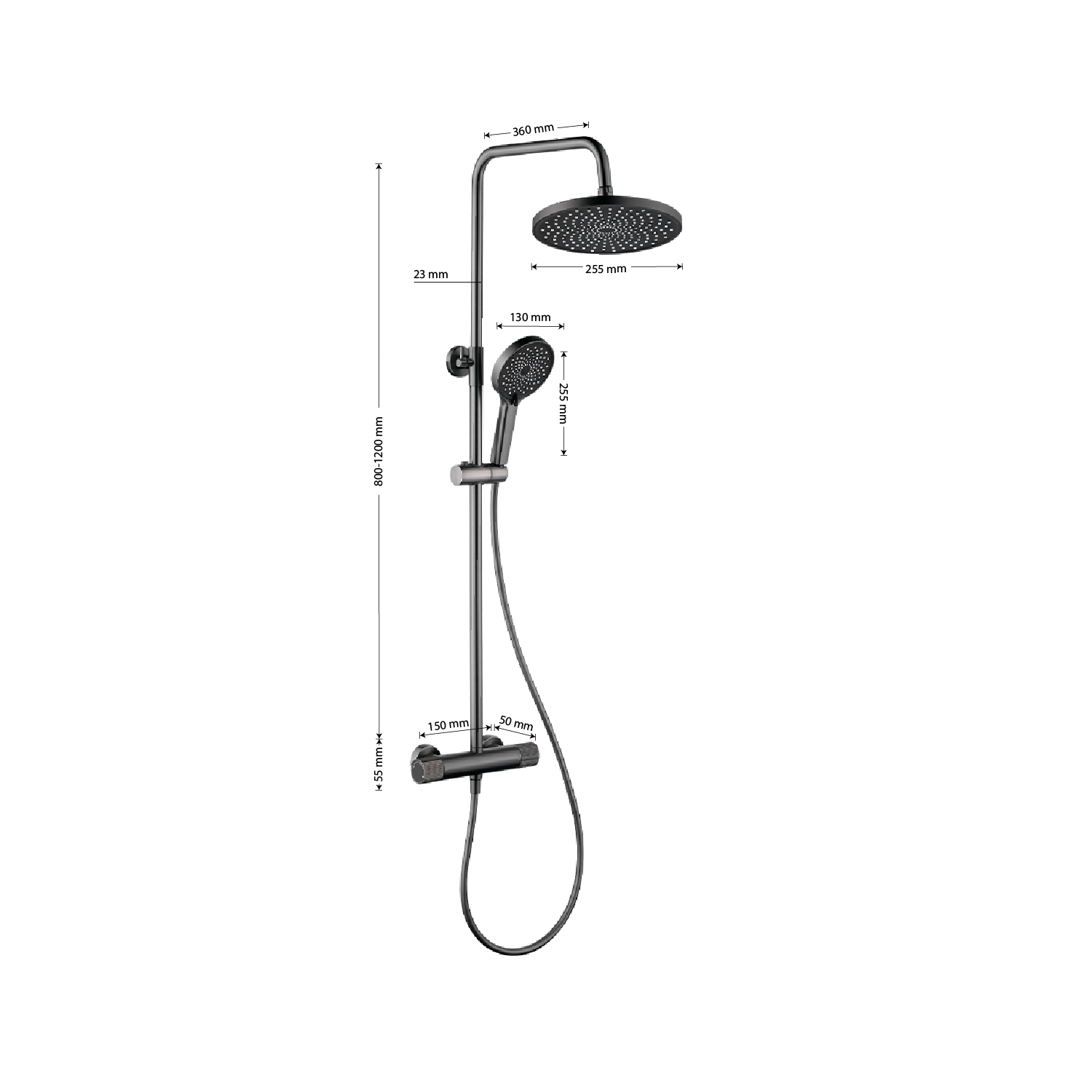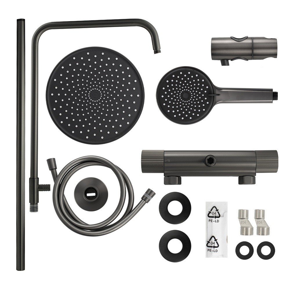 Смеситель термостатический + стойка душевая "тропический душ", с двумя лейками, из нержавеющей стали марки SUS 304, цвет ГРАФИТ.