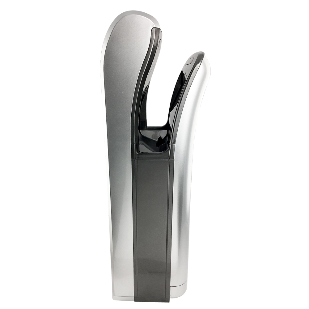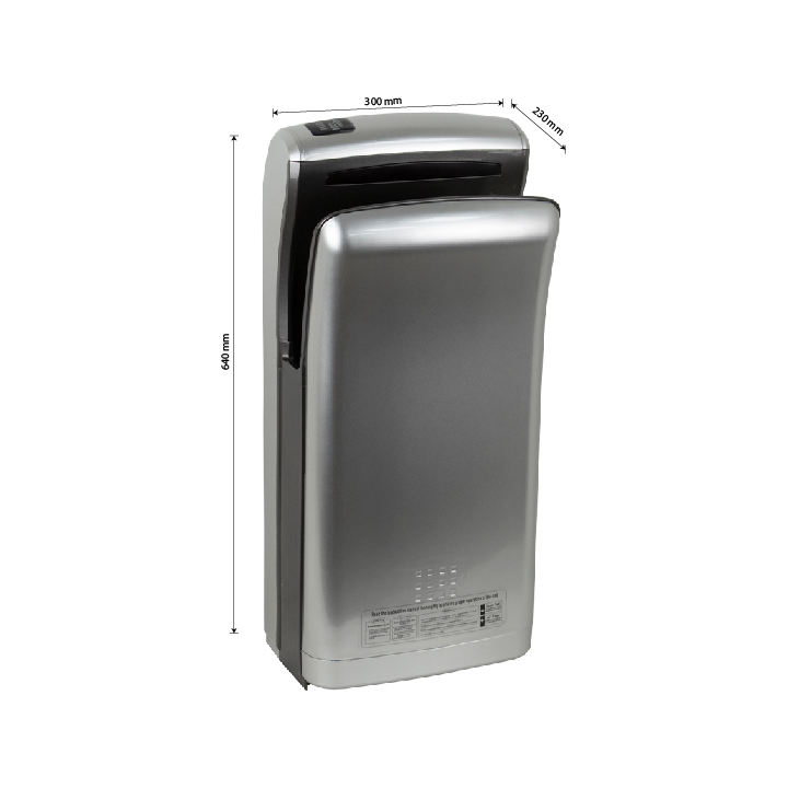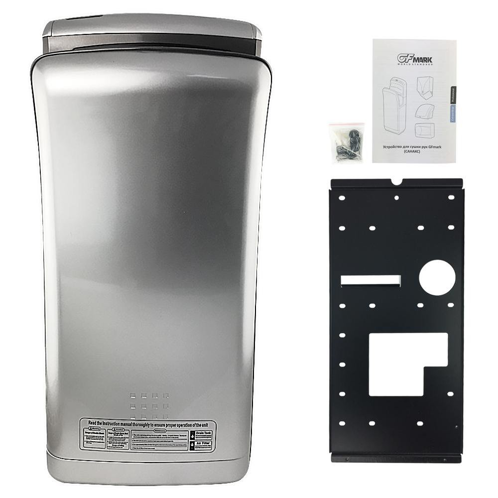 Электрическая сушилка для рук, ПРЕМИУМ, погружная, высокоскоростная, бизнес класса, с датчиком температуры и световым индикатором, цвет серый, с неоновой подсветкой, незаменима в местах с большой проходимостью людей (бизнес-центры, торговые центры, гостиницы, кинотеатры, рестораны). Корпус сушилки изготовлен из прочного пластика АБС серого цвета, который выдерживает различные механическое воздействие. Прибор отличается высокой мощностью и большой скоростью, что позволит использовать оборудование в различных помещениях. Для удобства эксплуатации в сушилке для рук предусмотрен инфракрасный датчик движения, который включает прибор без прикосновения к нему, при поднесении рук. Сушилка оснащена надёжным и долговечным двигателем. Прибор облачён в ударопрочный корпус. Со сливным отверстием и поддоном для влаги. Индикатор температуры выходящего воздуха, индикатор оставшегося времени. Подсветка при активности. Параметры - 2000Вт. Мощность мотора - 800 Вт, автоматическая, АС 220-230В 50/60Гц, сенсор включения 50 - 15