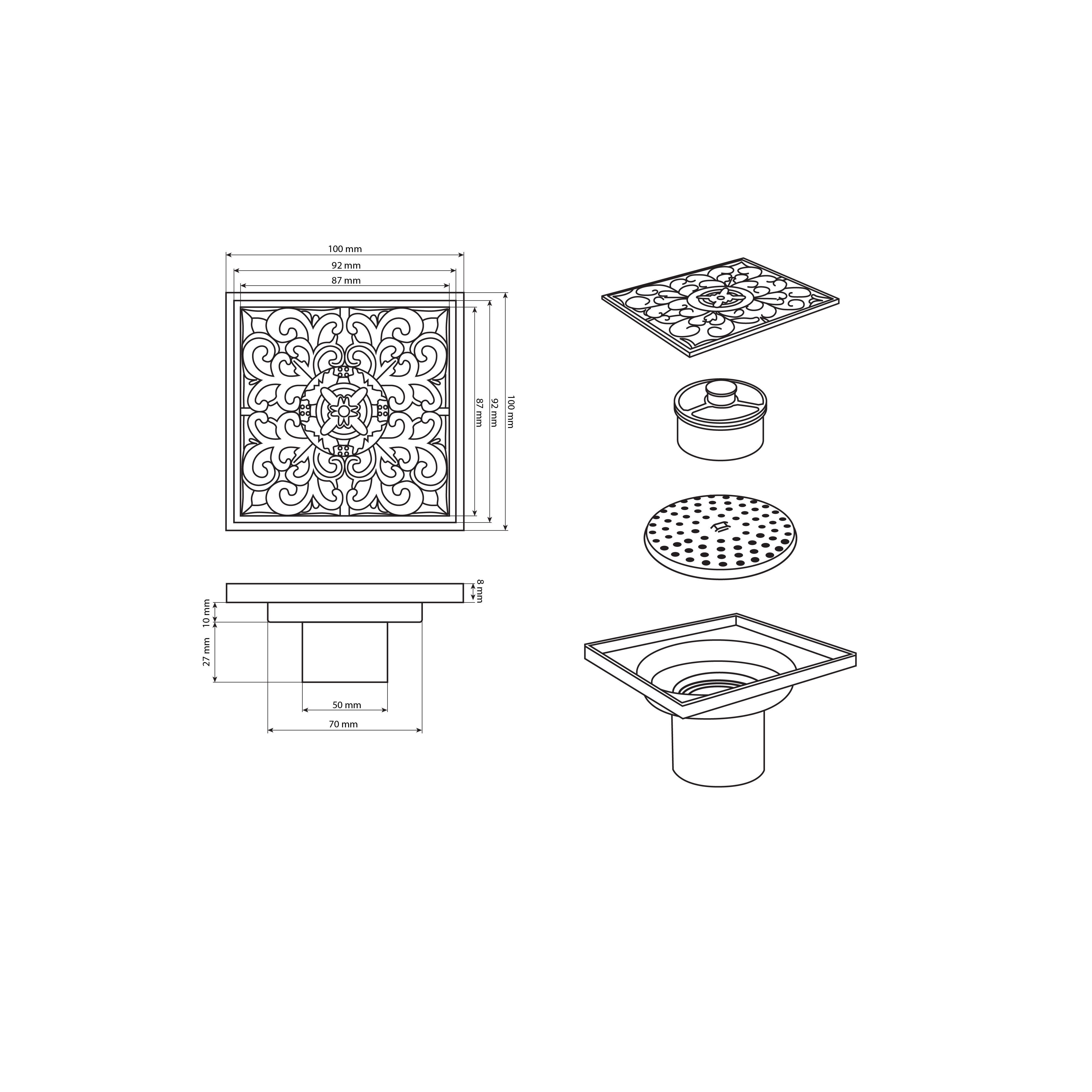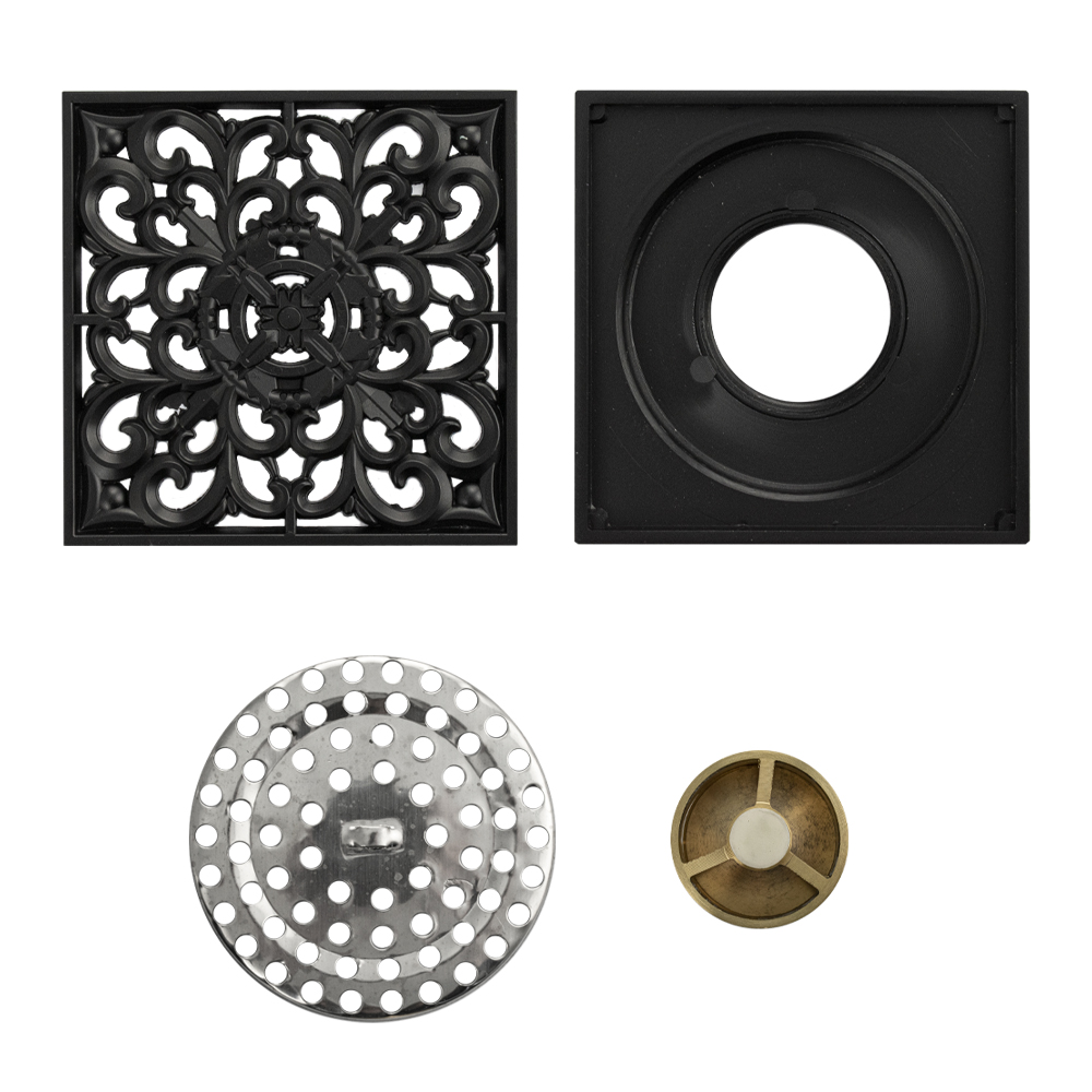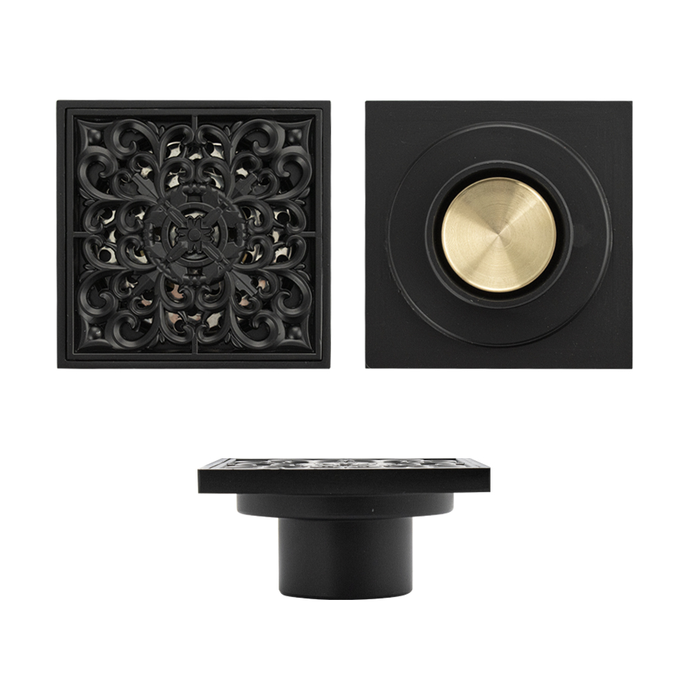 Душевой сливной трап из латуни с крышкой, с декором чёрного цвета, вертикальный, с сухим затвором воды – это специальный элемент сантехнических коммуникаций, предназначенный для отвода воды в систему канализации. Как правило, душевые трапы устанавливаются непосредственно в пол. Благодаря небольшим габаритам и высоте душевые трапы идеальны для установки в душевых зонах. Это важно для организации пространства, где нет возможности установить классическую ванну: в малогабаритных квартирах, студиях, совмещенных санузлах и т.п. Габаритные размеры: высота 45 мм, ширина 100 мм, длина 100 мм, выход в канализацию 50 мм. Вес - 0,500 кг, объём - 0,00060 м3