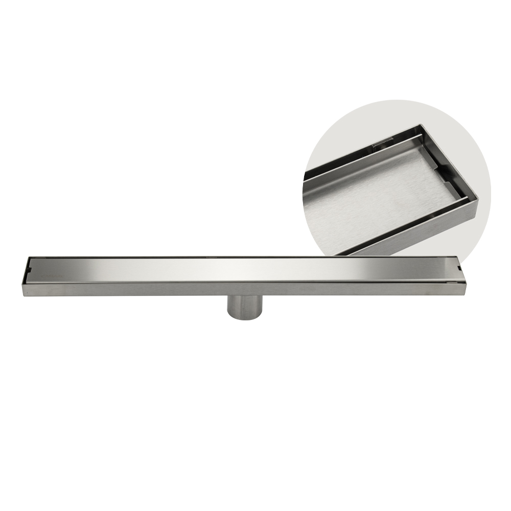 Душевой сливной трап из нержавеющей стали, линейный, вертикальный с гидрозатвором, крышка литая двухсторонняя, с возможностью вставки плитки– это специальный элемент сантехнических коммуникаций, предназначенный для отвода воды в систему канализации. Как правило, душевые трапы устанавливаются непосредственно в пол. Благодаря небольшим габаритам и высоте душевые трапы идеальны для установки в душевых зонах. Это важно для организации пространства, где нет возможности установить классическую ванну: в малогабаритных квартирах, студиях, совмещенных санузлах и т.п. Габаритные размеры: высота 70 мм, ширина 70 мм, длина 600 мм, выход в канализацию 50 мм. Вес - 1,400 кг, объём - 0,00400 м3.